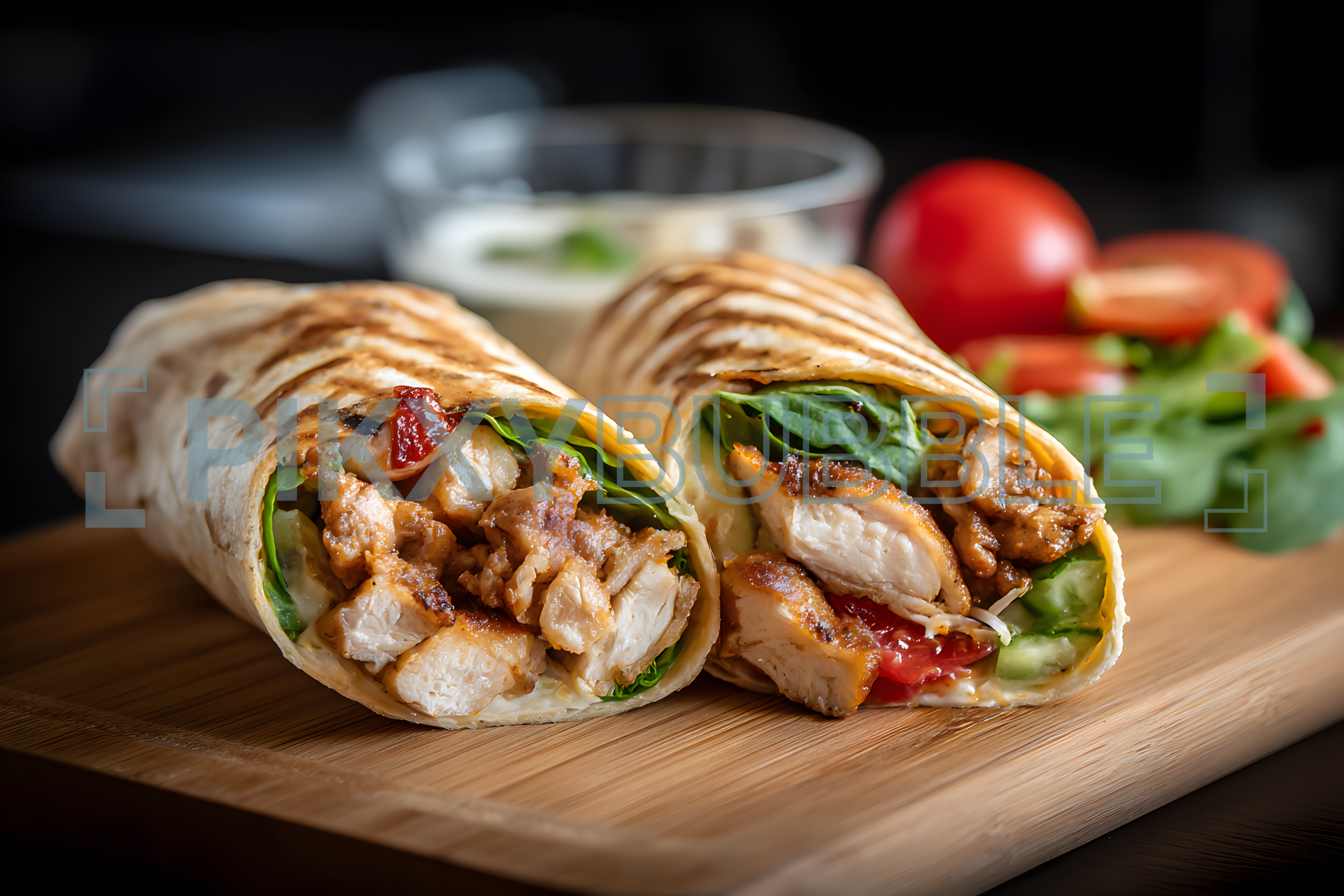 Dégustez notre délicieux wrap! Un mélange parfait d'ingrédients frais.