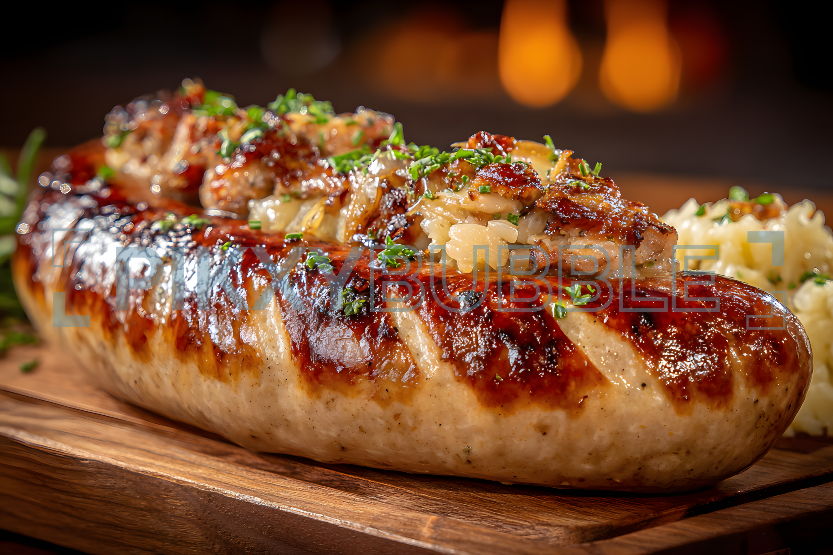 Découvrez notre délicieuse saucisse faite maison, garnie de riz parfumé et d'herbes fines. Un plat qui ravira les amateurs de bonne cuisine !