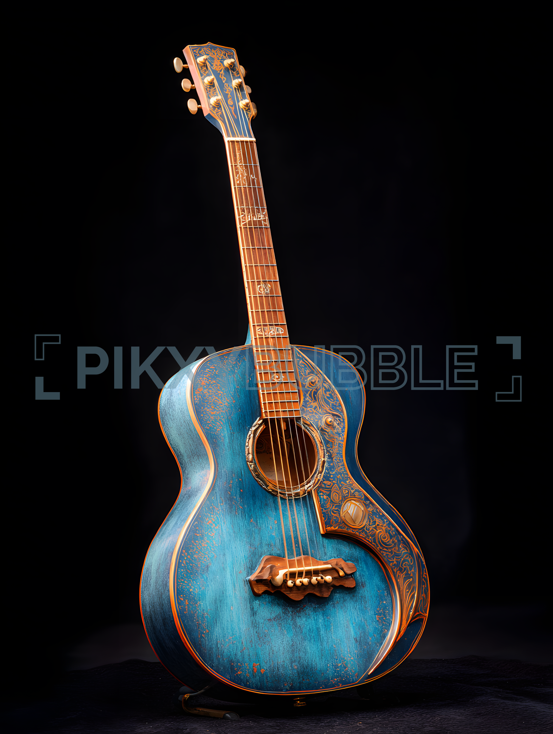 Découvrez notre magnifique guitare en bois, peinte à la main.
