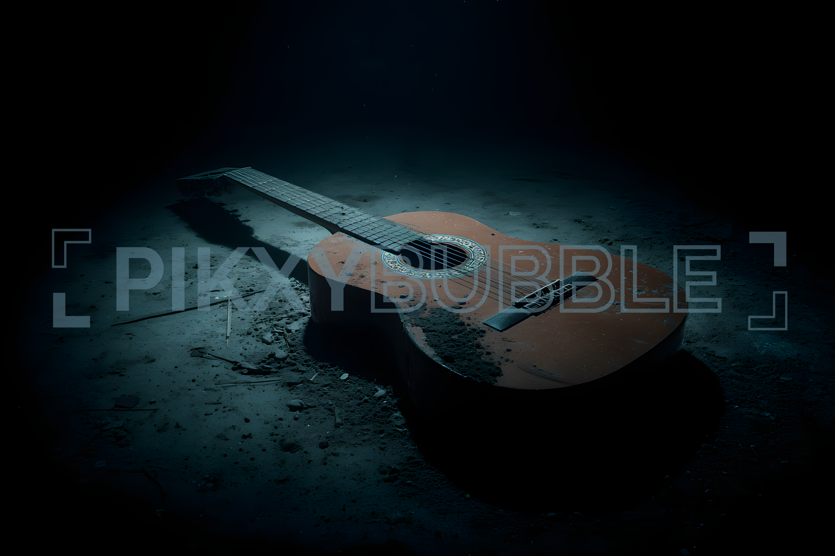 Guitare oubliée dans un monde mystérieux.