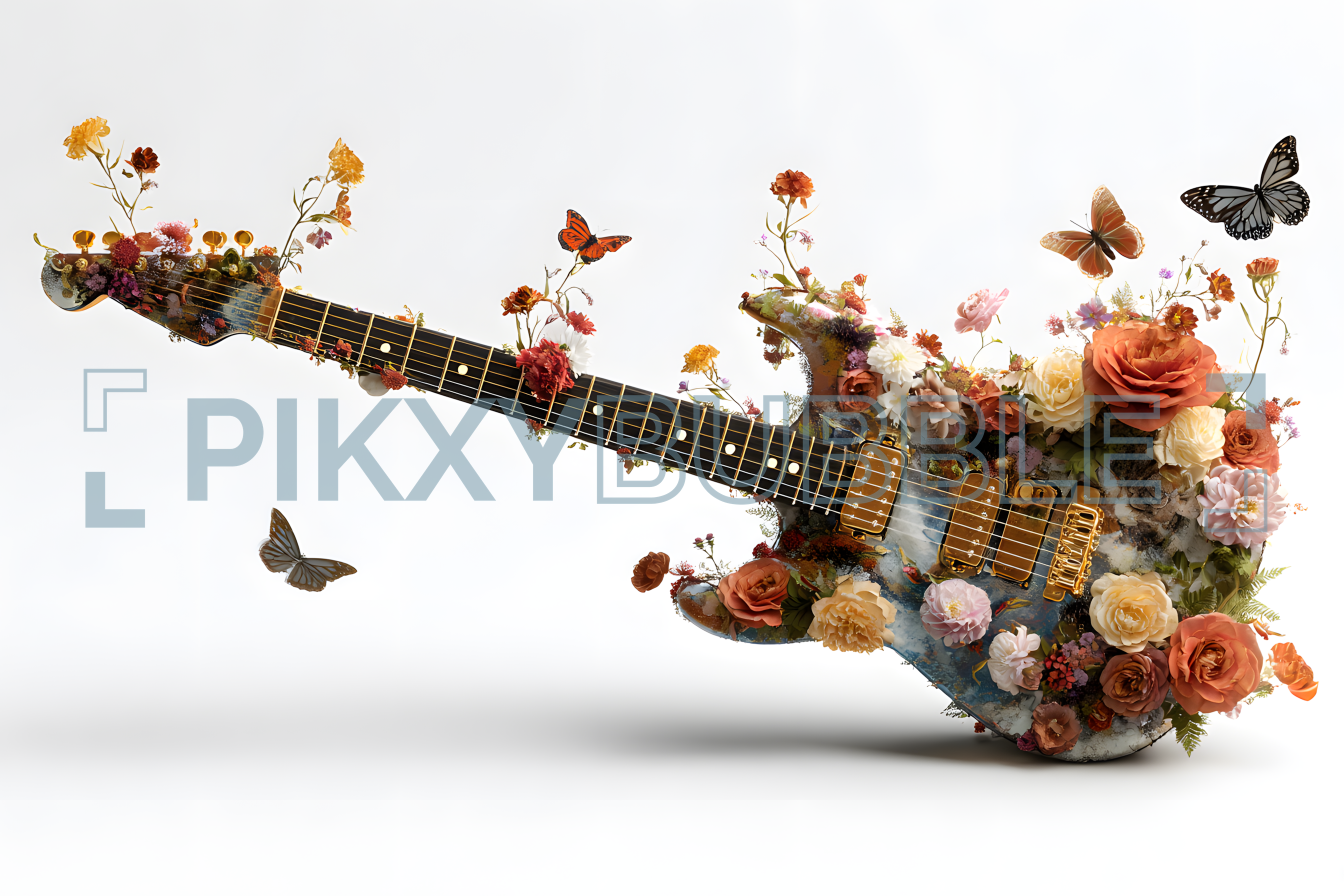 Guitare florale avec des motifs organiques fascinants. Une