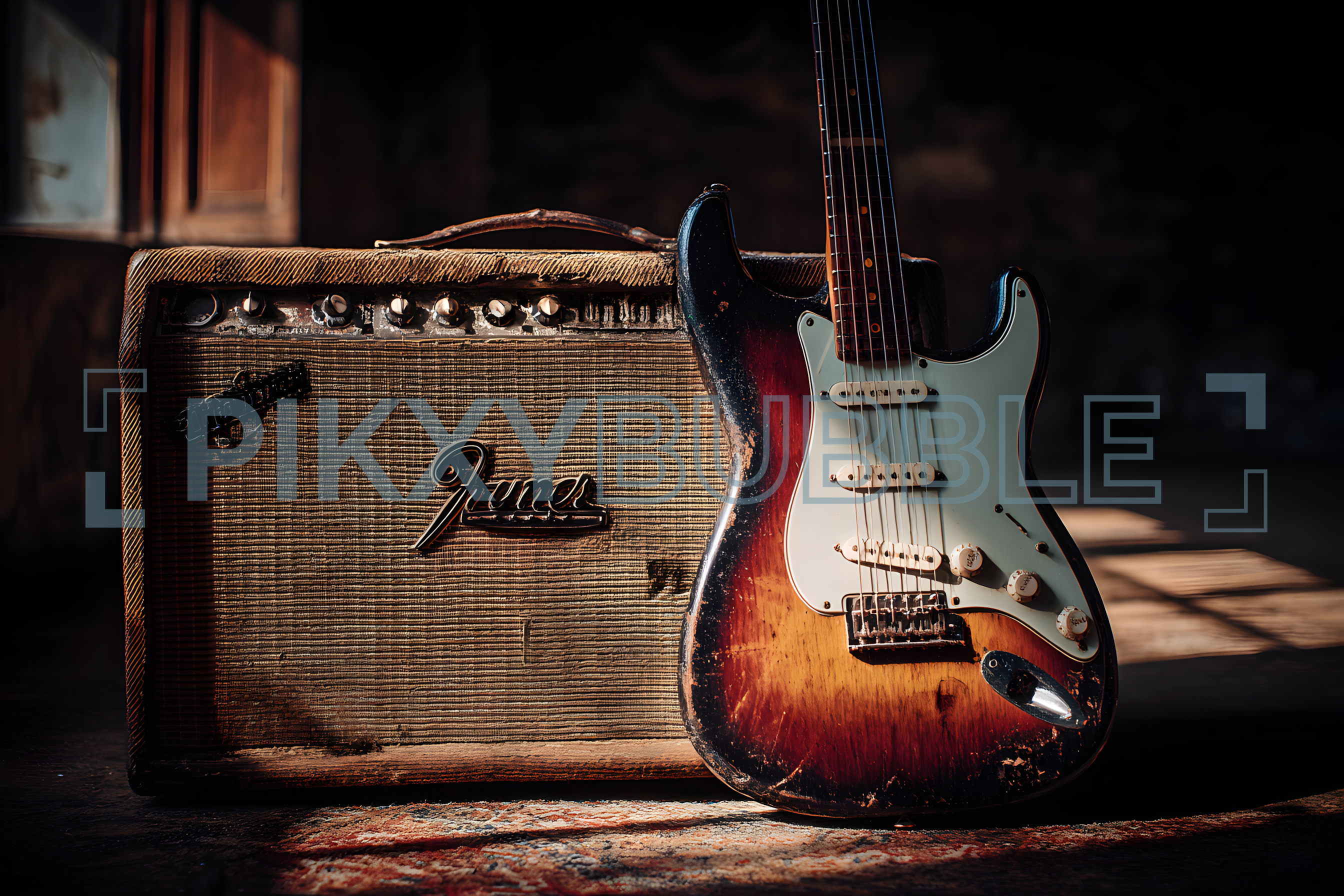 Guitare électrique vintage avec amplificateur classique. Voici quelques caractéristiques :