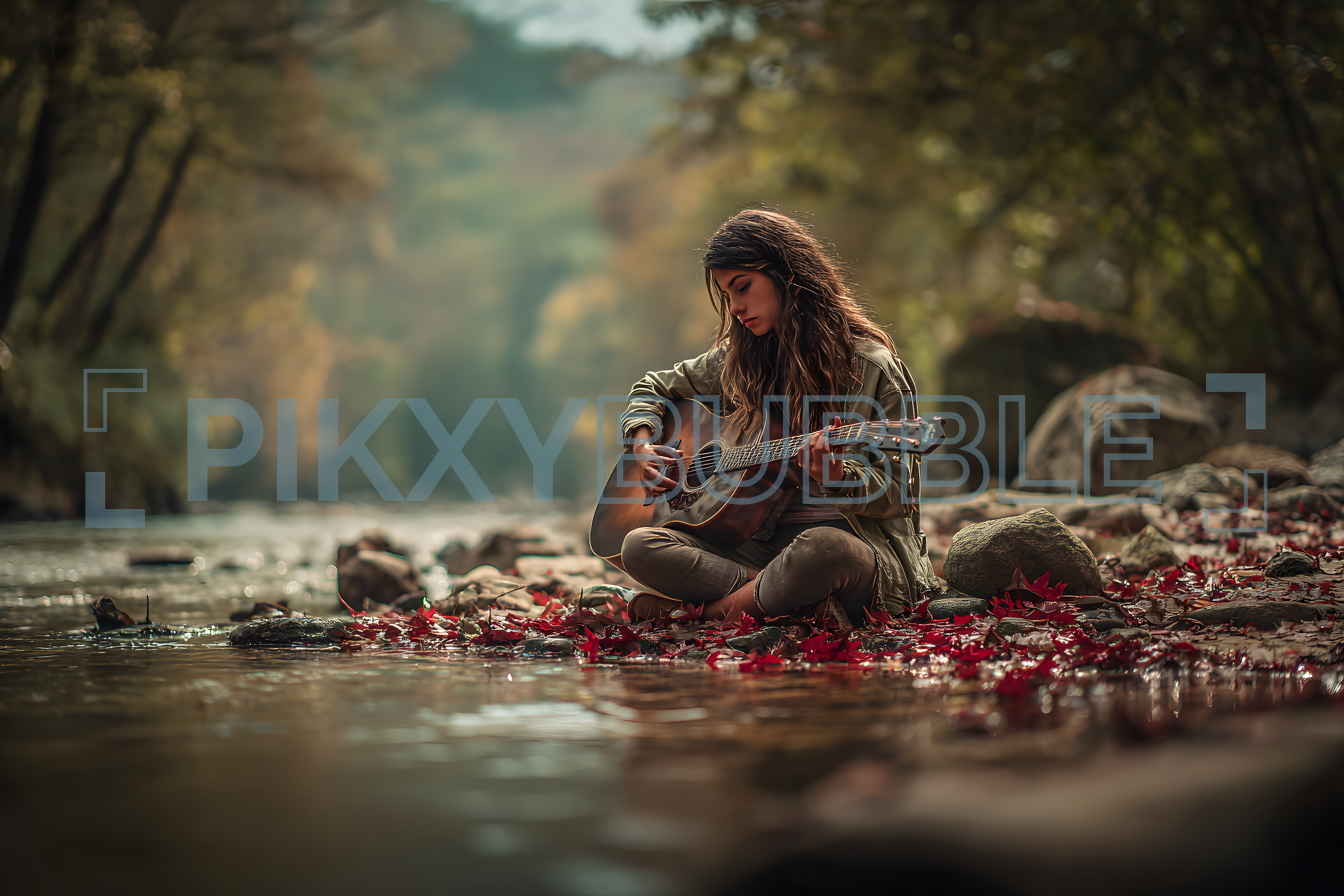Découvrez la magie de la musique au bord de la rivière. Une guitare en main, la sérénité enveloppe l'atmosphère. Voici quelques éléments qui rendent ce moment unique :
