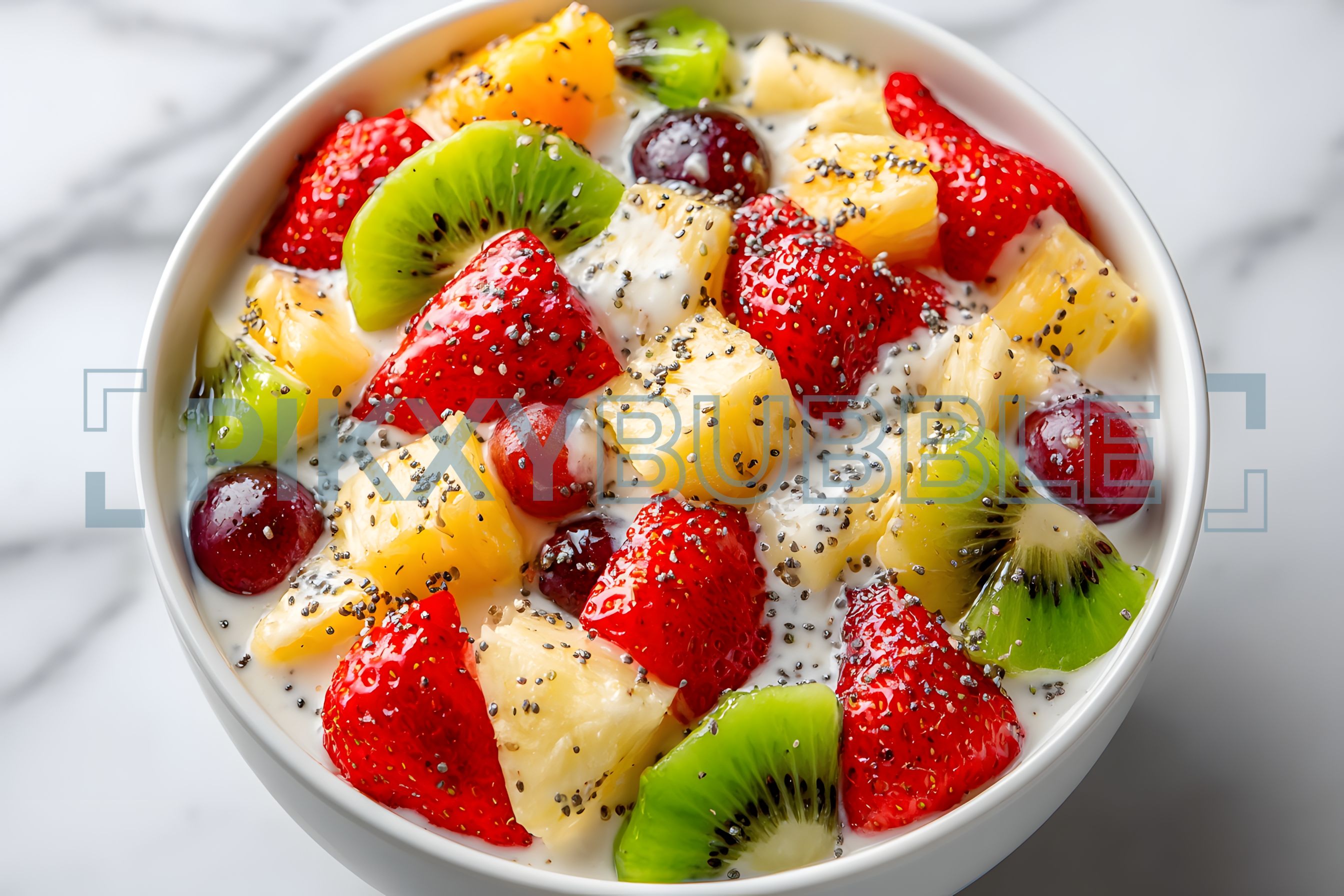 Salade de fruits frais riche en vitamines. Célébrez la fraîcheur avec une variété de fruits délicieux :