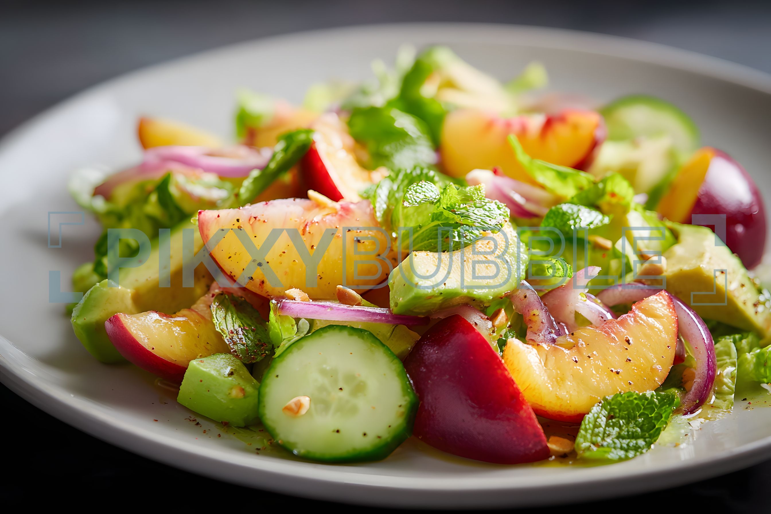 - Fruits frais : pêches, pommes et menthe