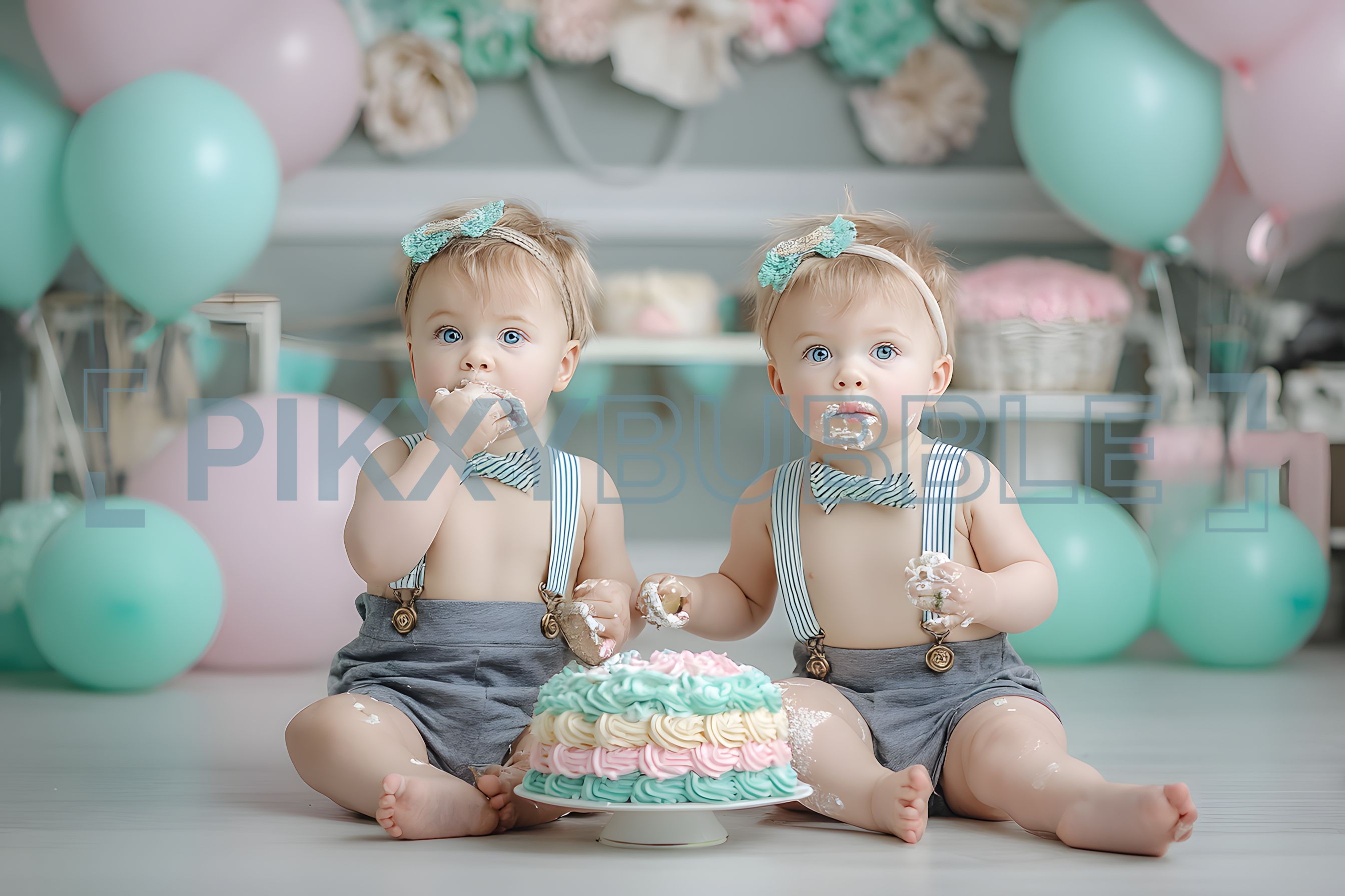 Joli moment de fête avec des jumeaux adorables dégustant un gâteau. Voici quelques points à noter :