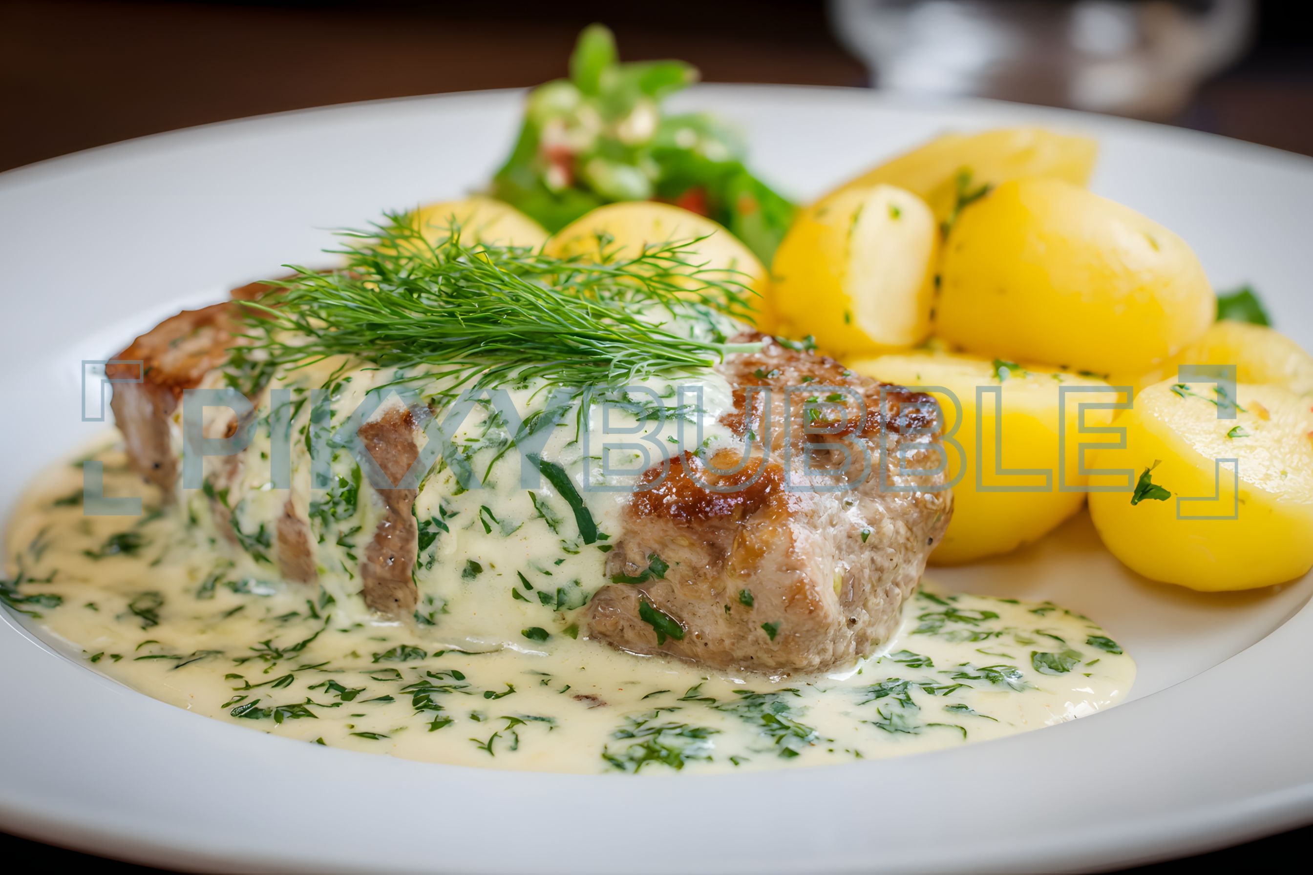 Délicieuse recette de viande avec des pommes de terre et une sauce crémeuse. Voici les ingrédients :
