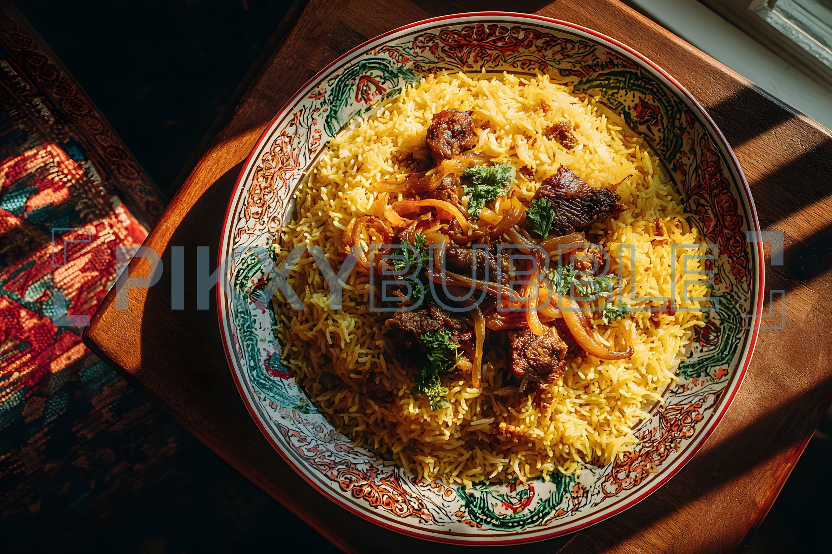 Cet plat savoureux est préparé avec des épices aromatiques, du riz basmati et de la viande de votre choix.