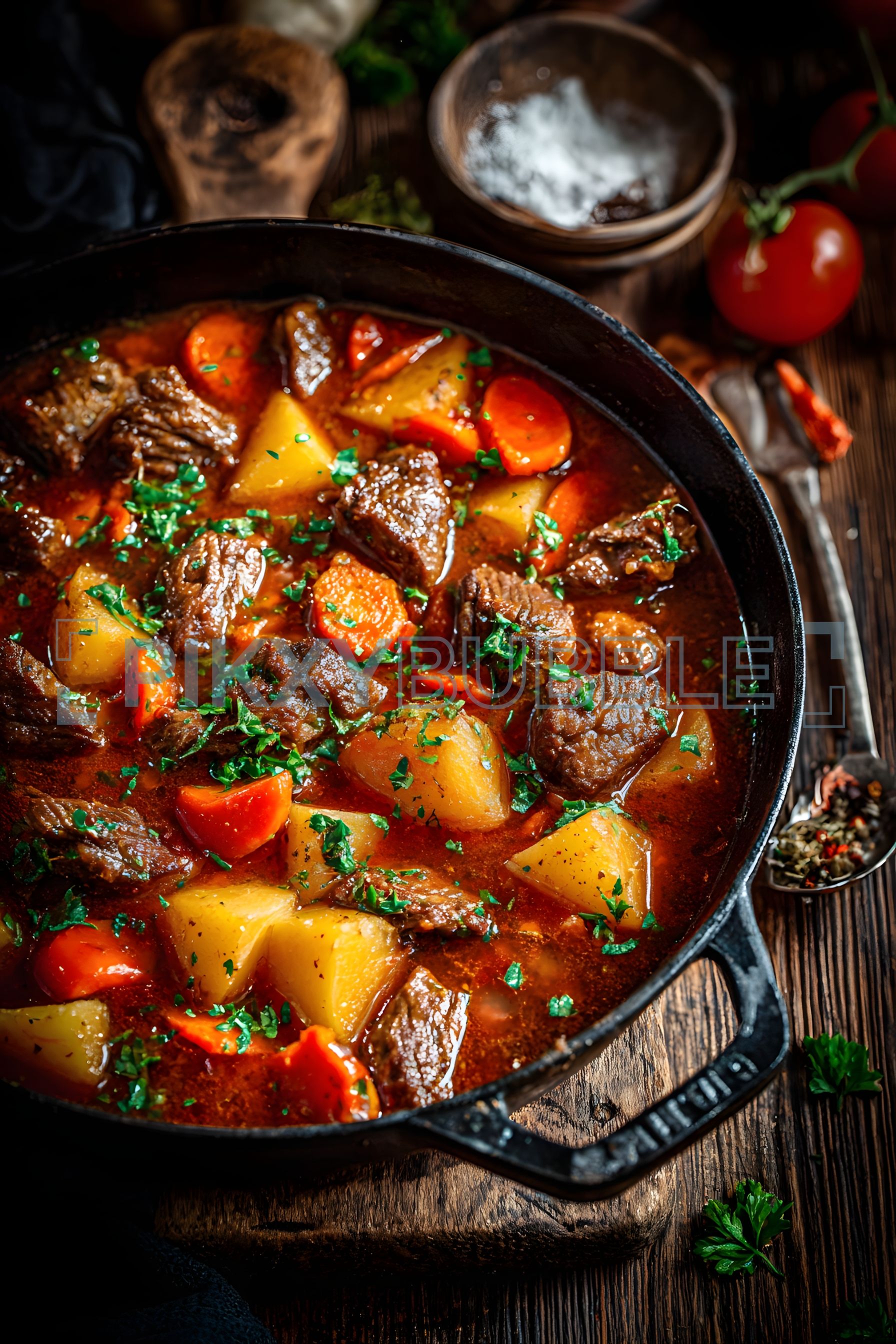 Délicieux ragoût de bœuf à savourer en famille. Ce plat réconfortant associe des ingrédients frais et savoureux.