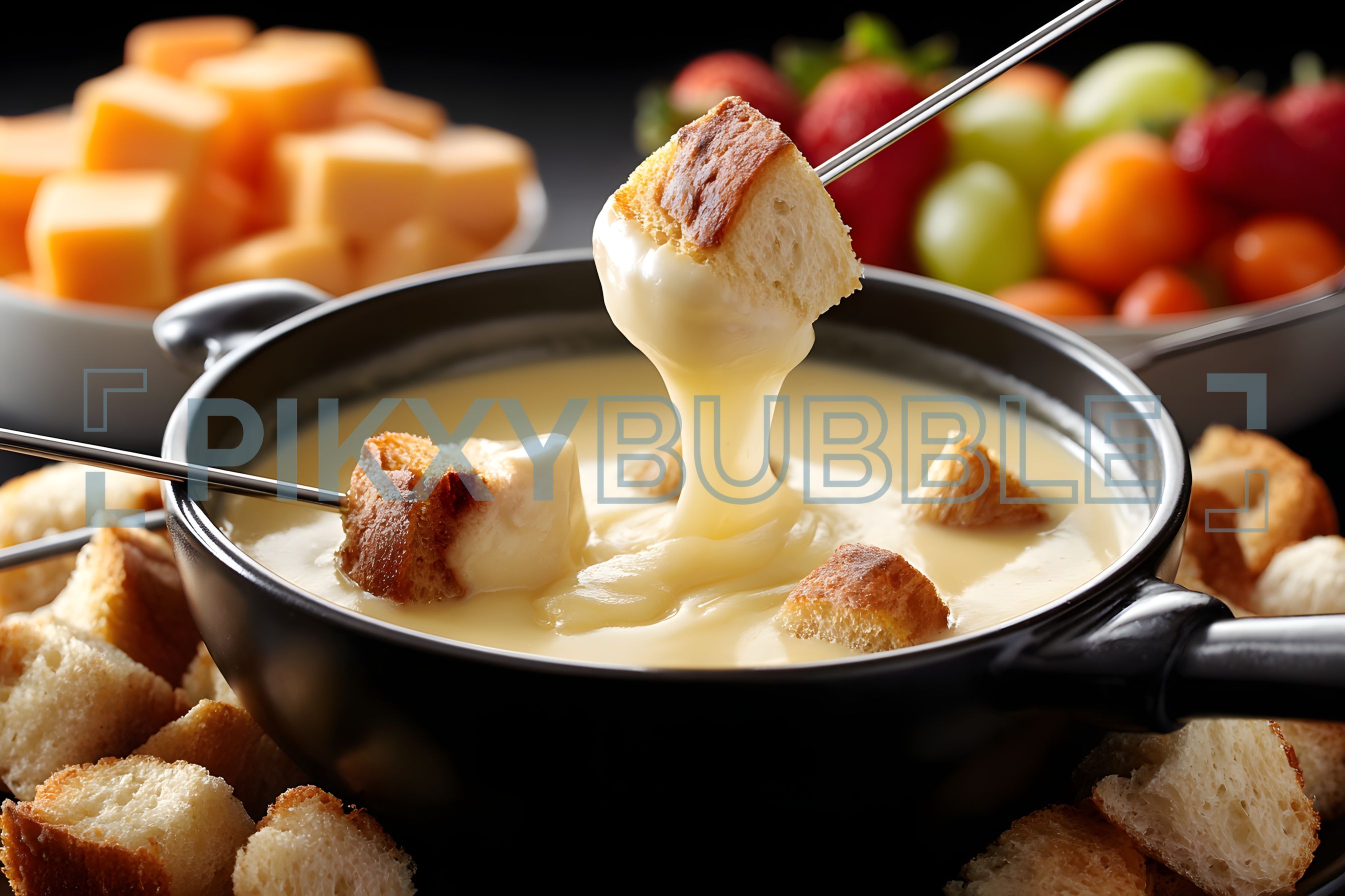 Découvrez la délicieuse fondue au fromage. C'est un plat savoureux idéal pour les soirées entre amis. Ingrédients principaux :