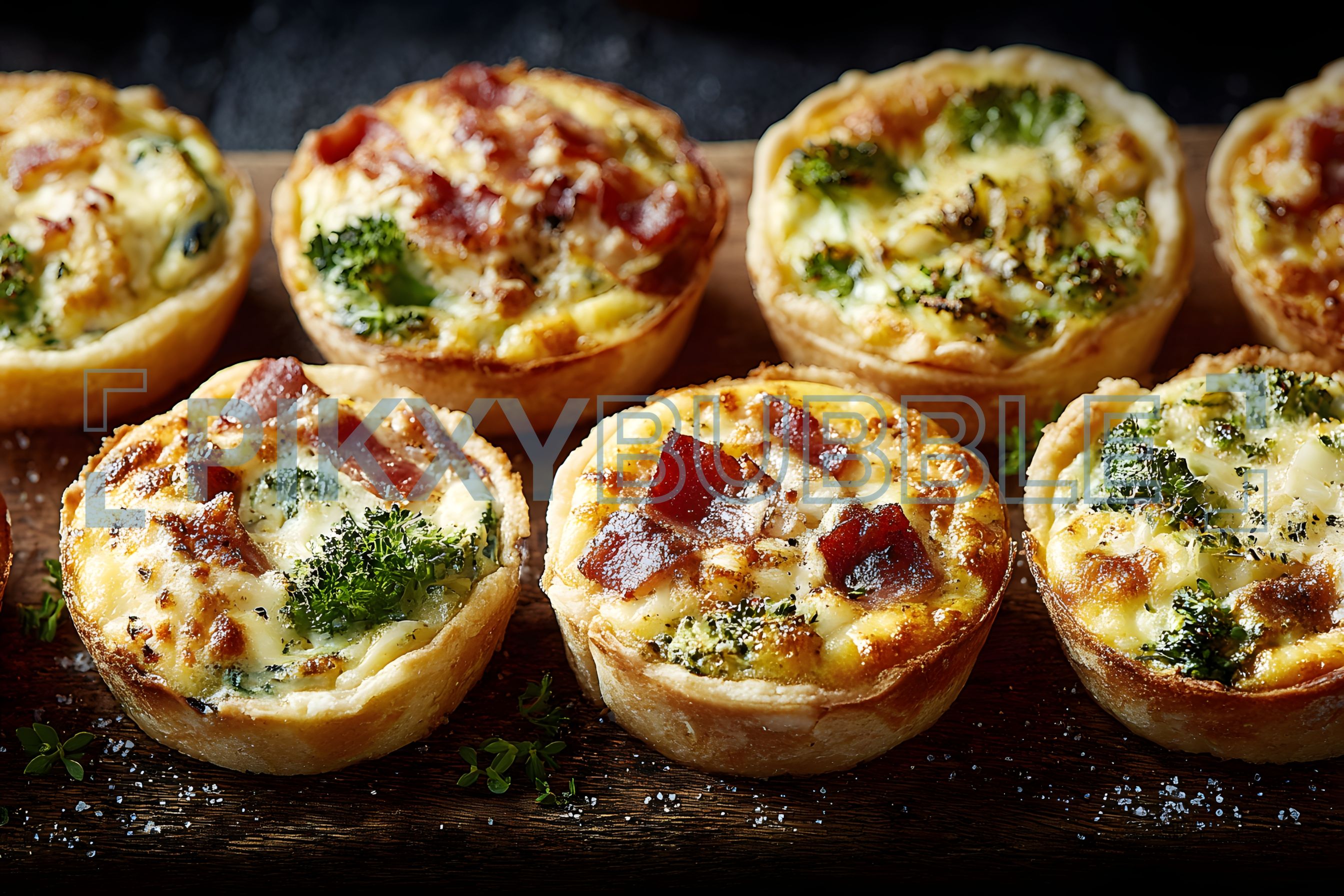Découvrez nos délicieuses quiches individuelles au brocoli et au bacon.
