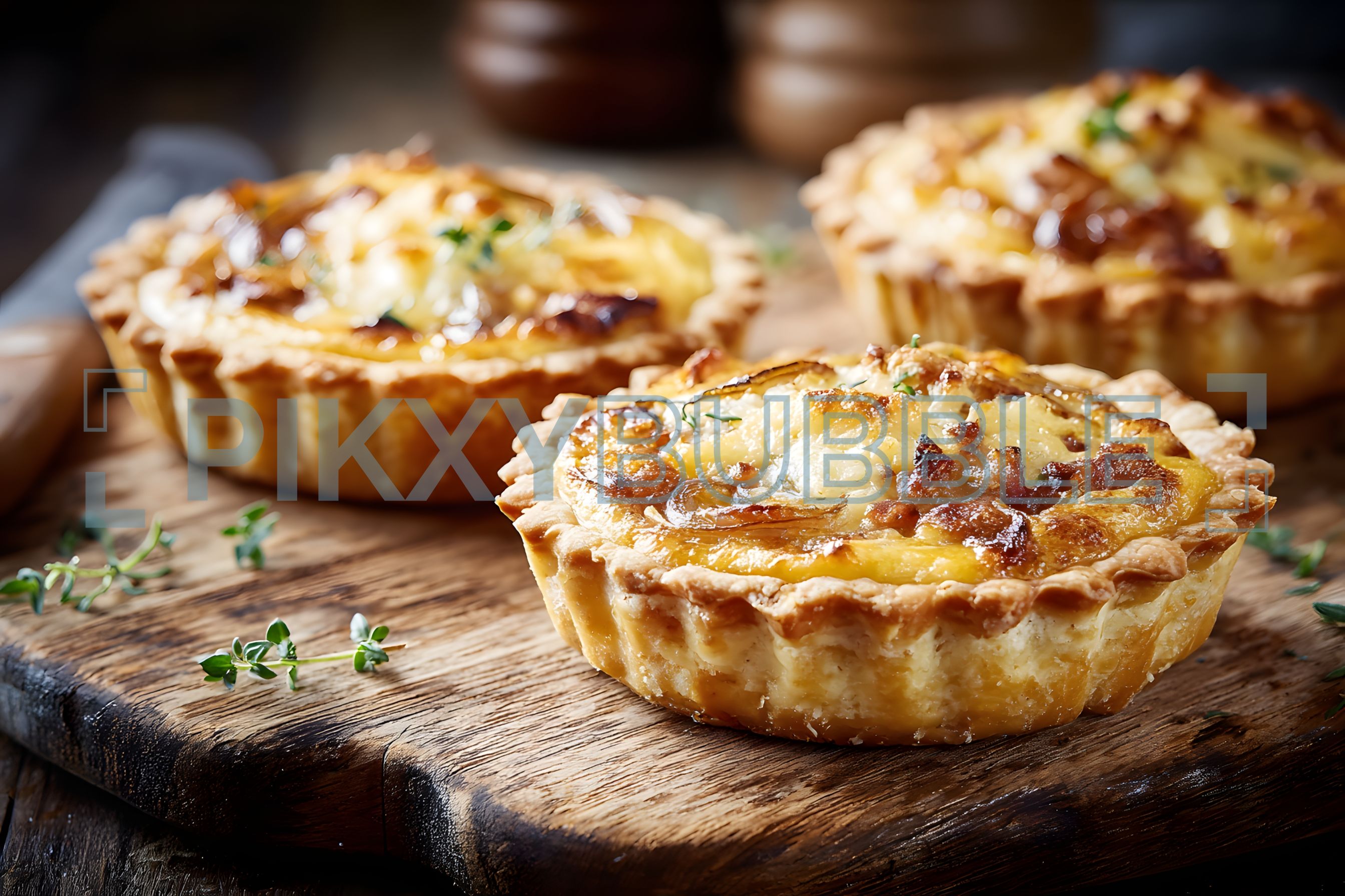Délicieuses tartes salées richement garnies, préparées avec amour. Ingrédients frais :