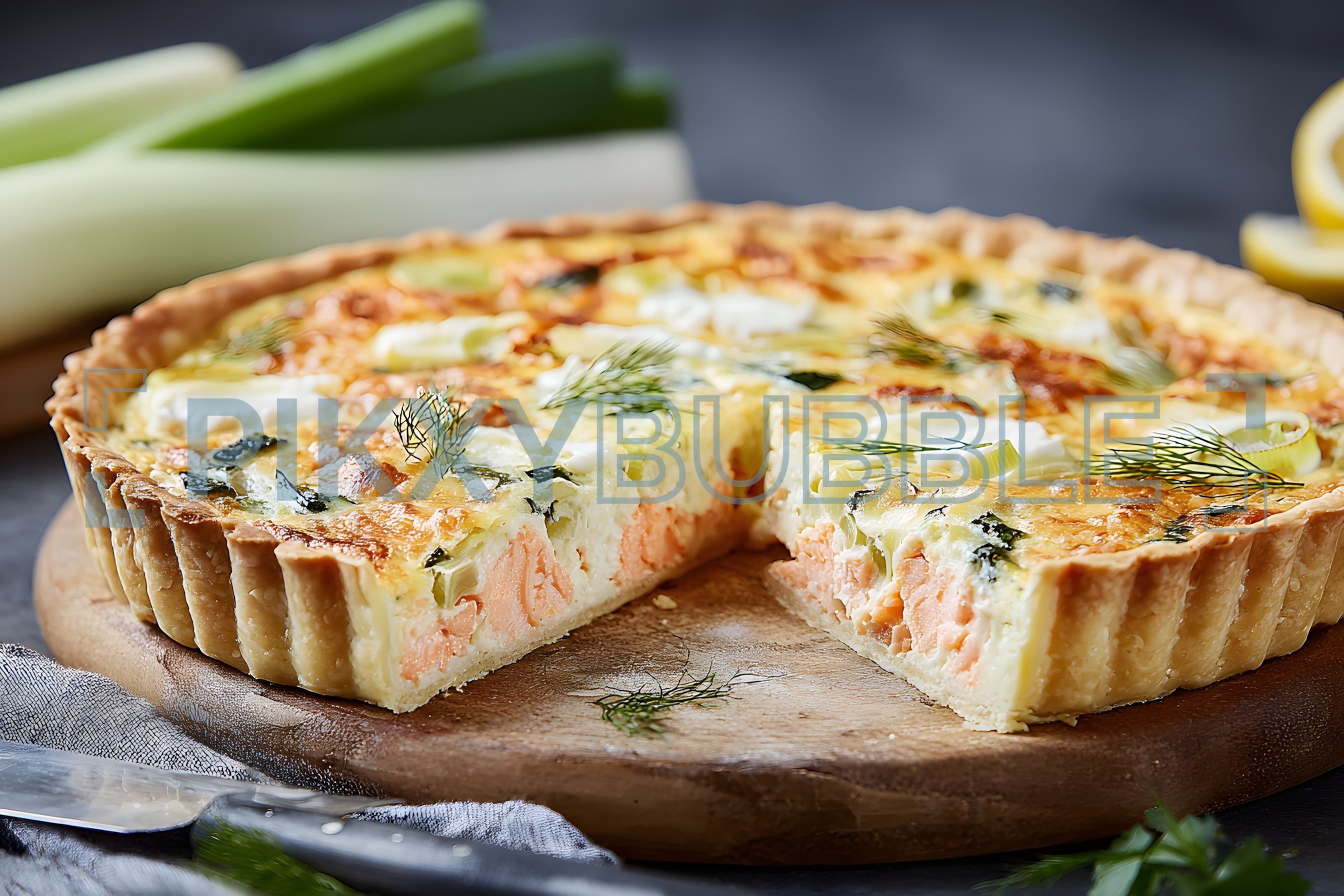 Découvrez notre délicieuse tarte aux poireaux et saumon. Cette recette est parfaite pour un dîner savoureux.