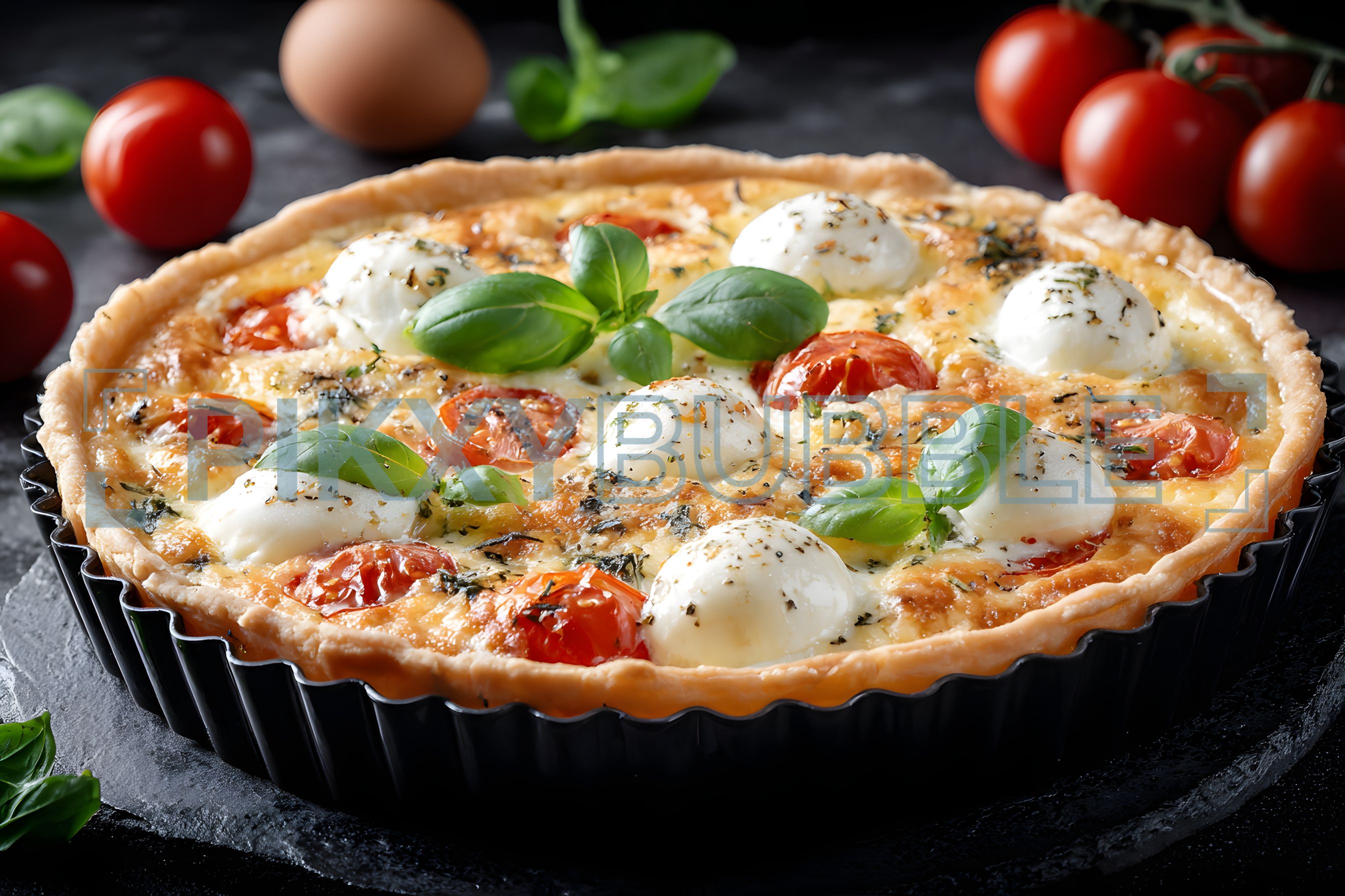 Une délicieuse quiche à base de tomates cerises et de fromage.