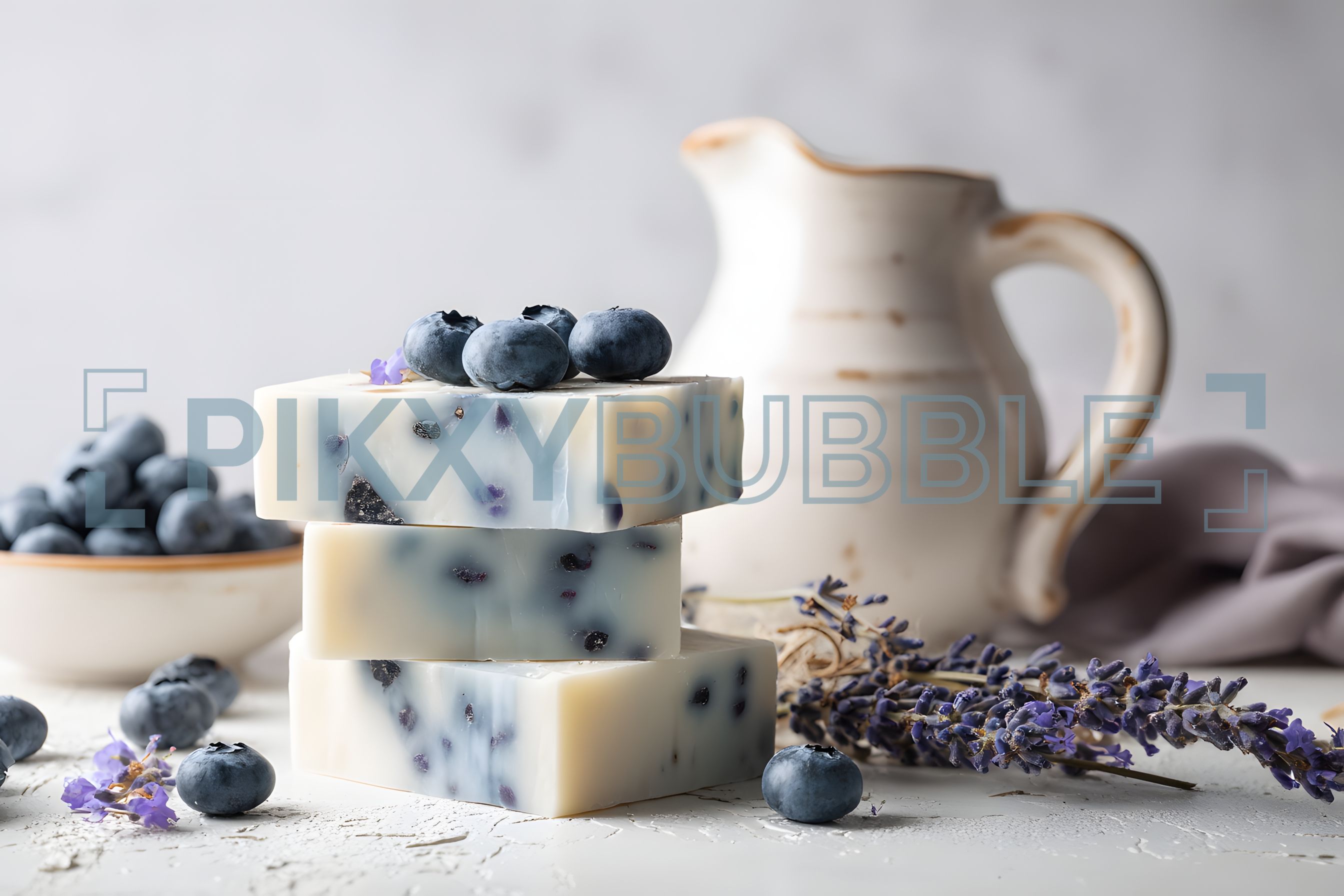 Savon artisanal fait main, enrichi en myrtille et lavande.