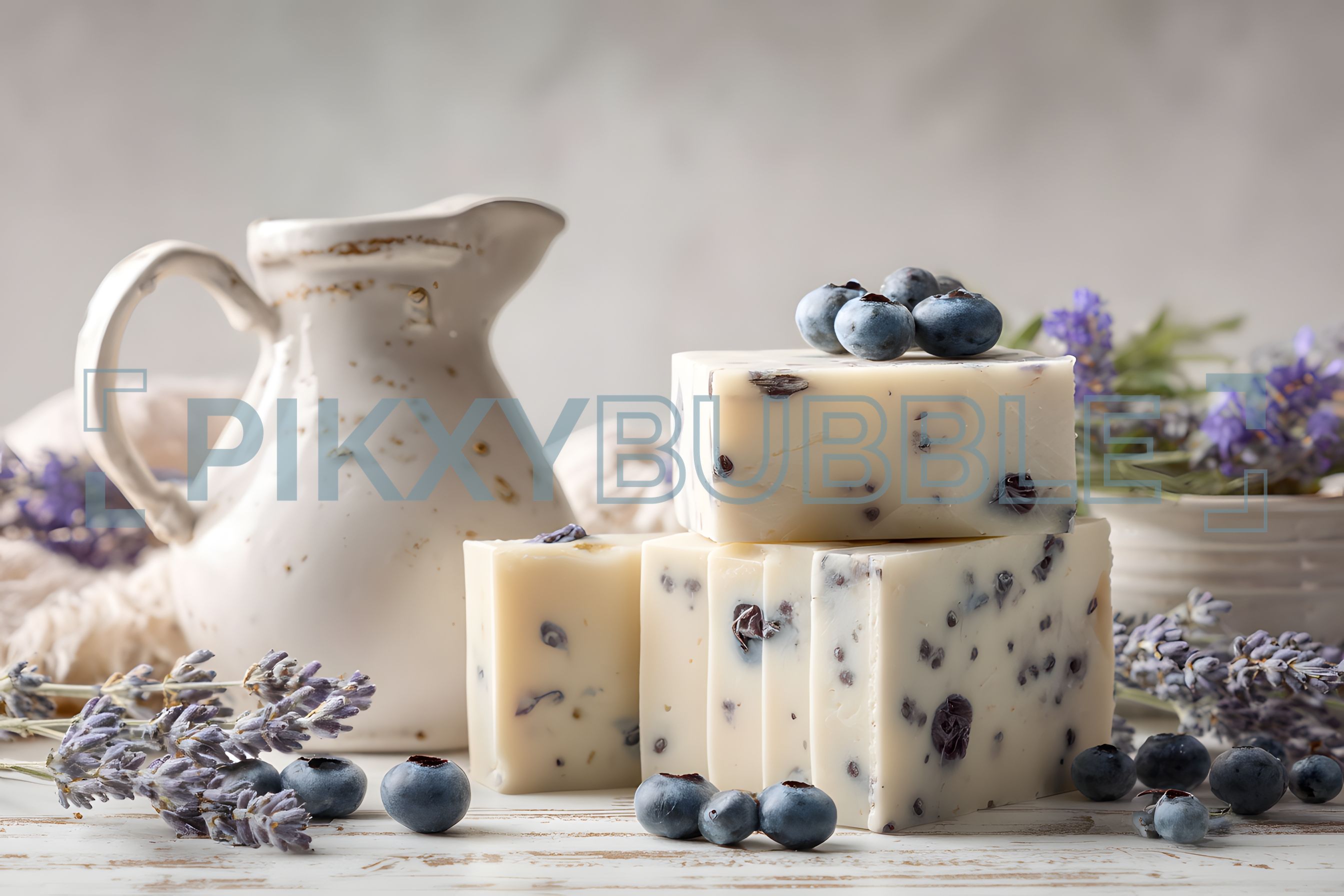 Découvrez nos savons artisanaux fabriqués avec des ingrédients naturels. Chaque savon est enrichi de fruits frais comme les myrtilles :