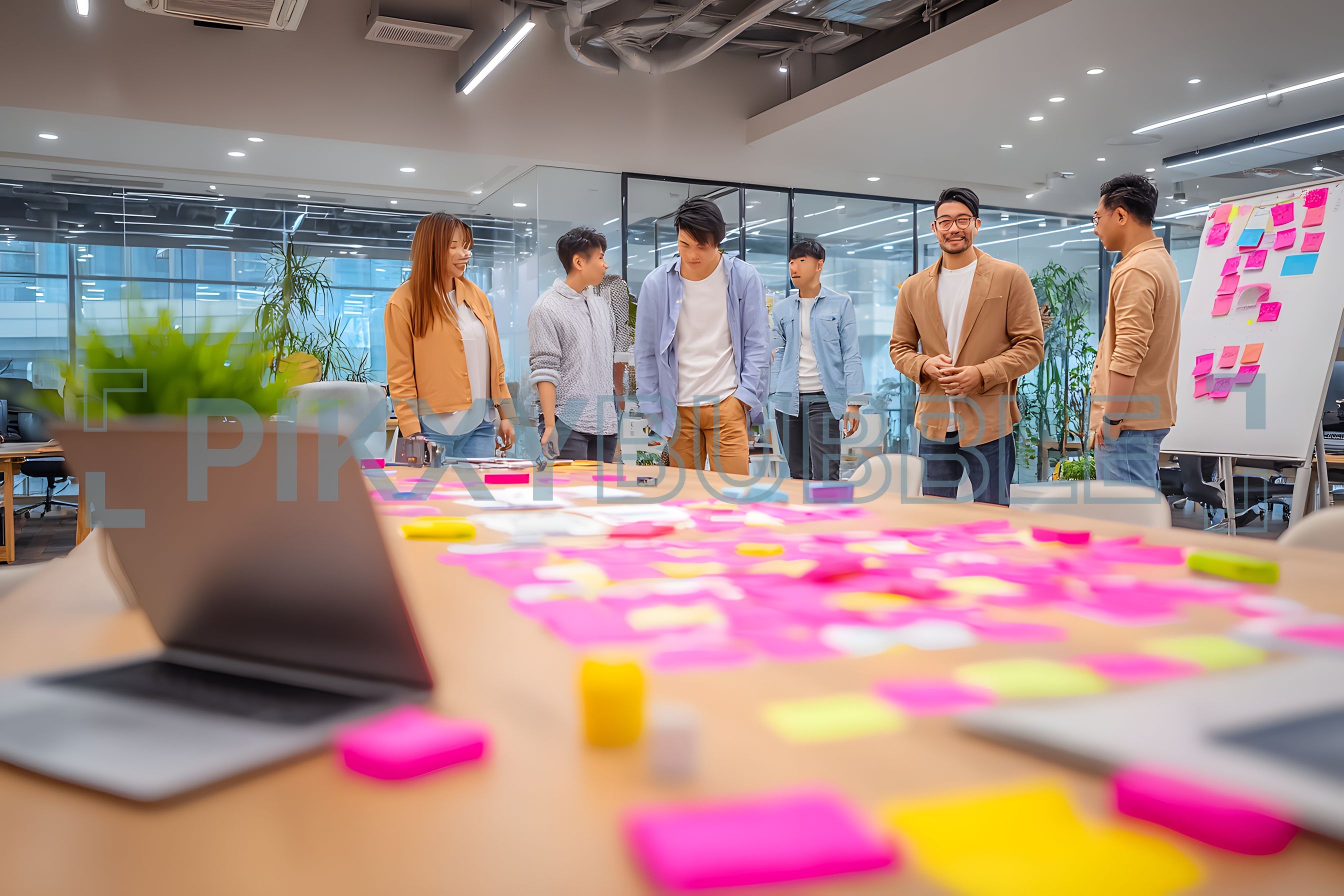 Un environnement créatif avec des post-it colorés pour stimuler l'innovation.