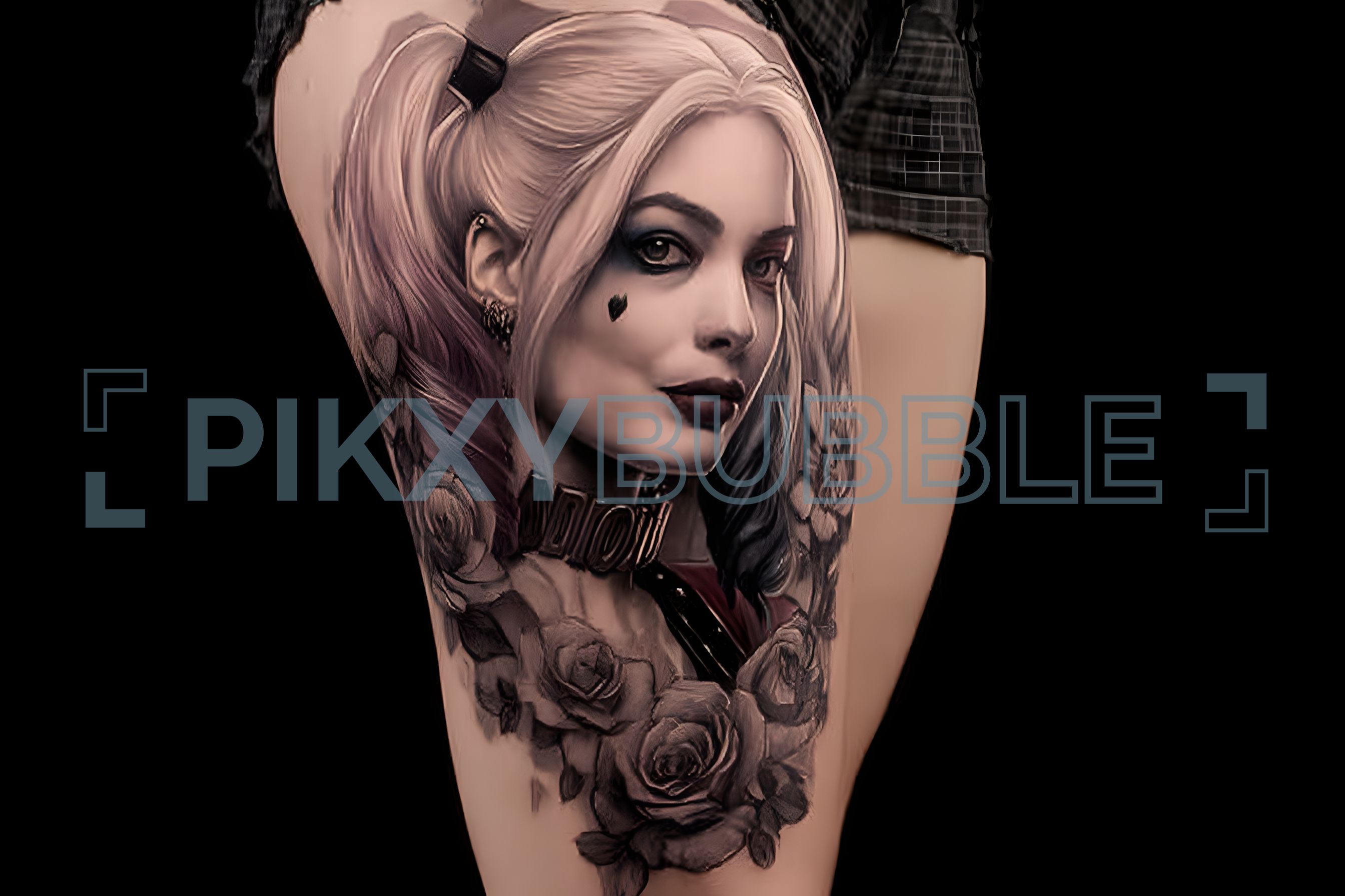 Description du tatouage : Ce tatouage représente une figure emblématique entourée de fleurs. Voici quelques détails :