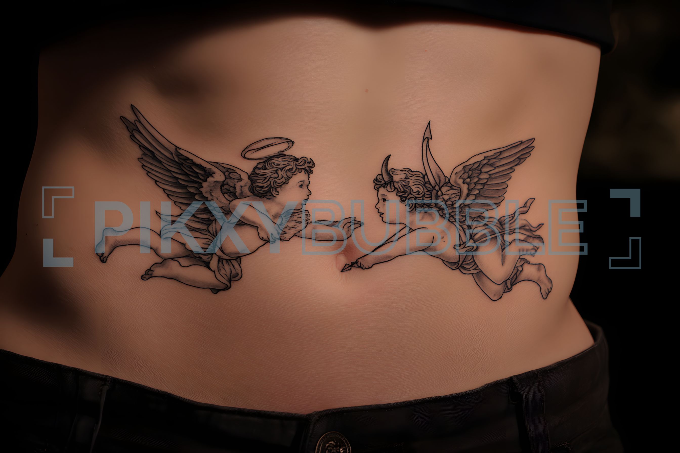 Tatouage d'anges fascinant représentant un ange gardien et un ange déchu.