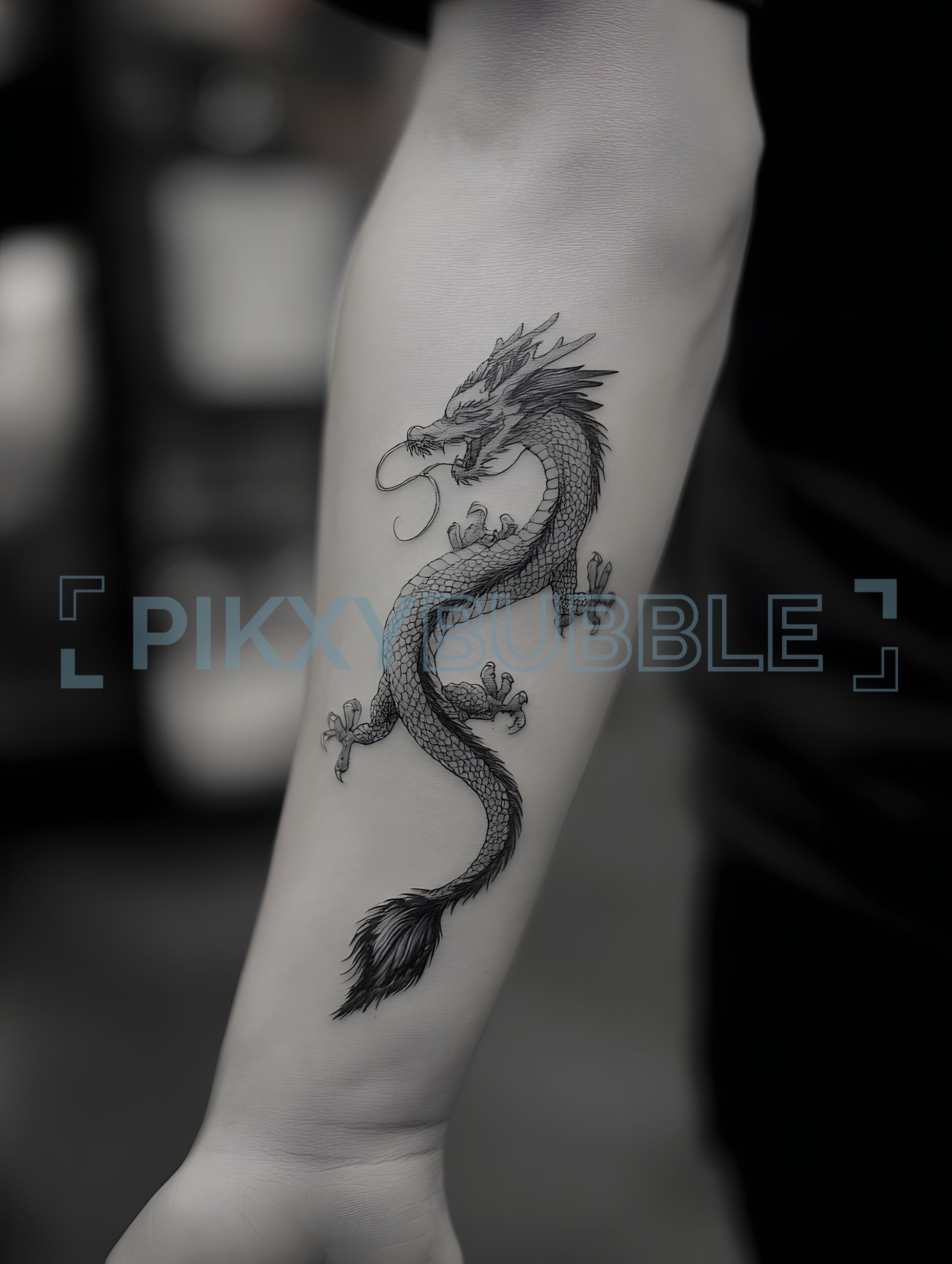 Dragon tatoué sur l'avant-bras.