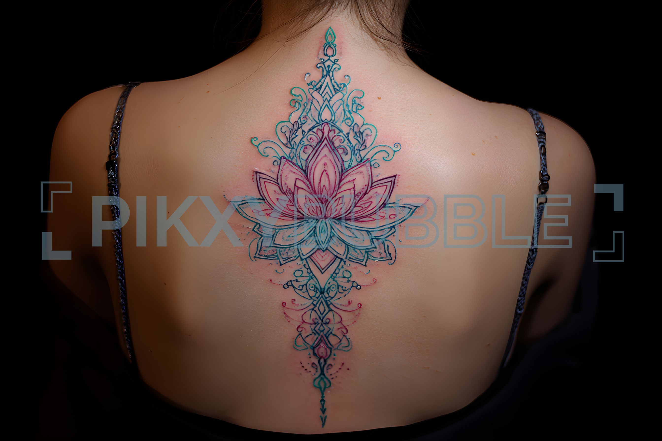 Tatouage de lotus réalisé avec précision. Ce design captivant inclut :