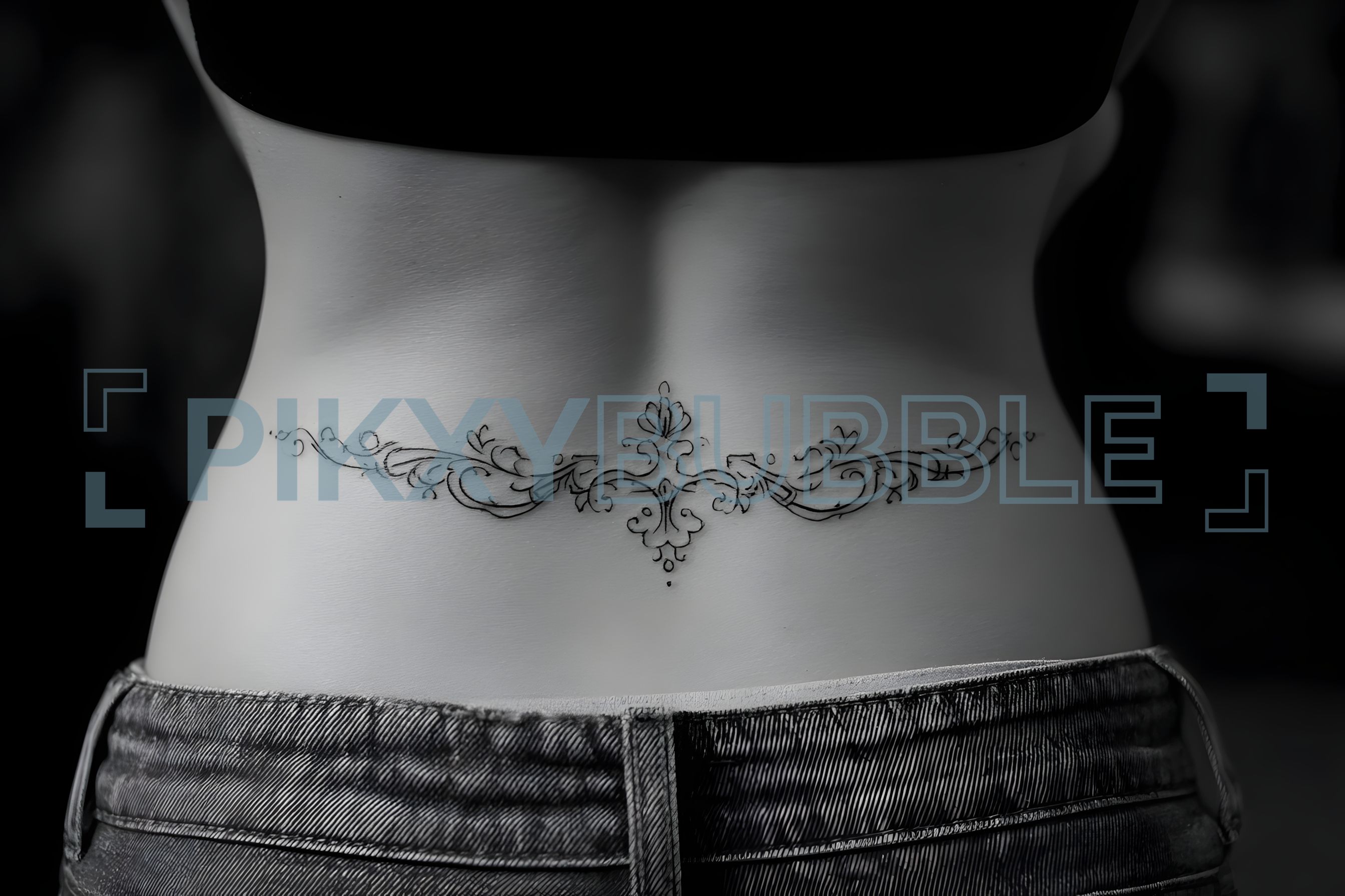 Tatouage décoratif qui s'étend sur le bas du dos, incitant à la créativité.