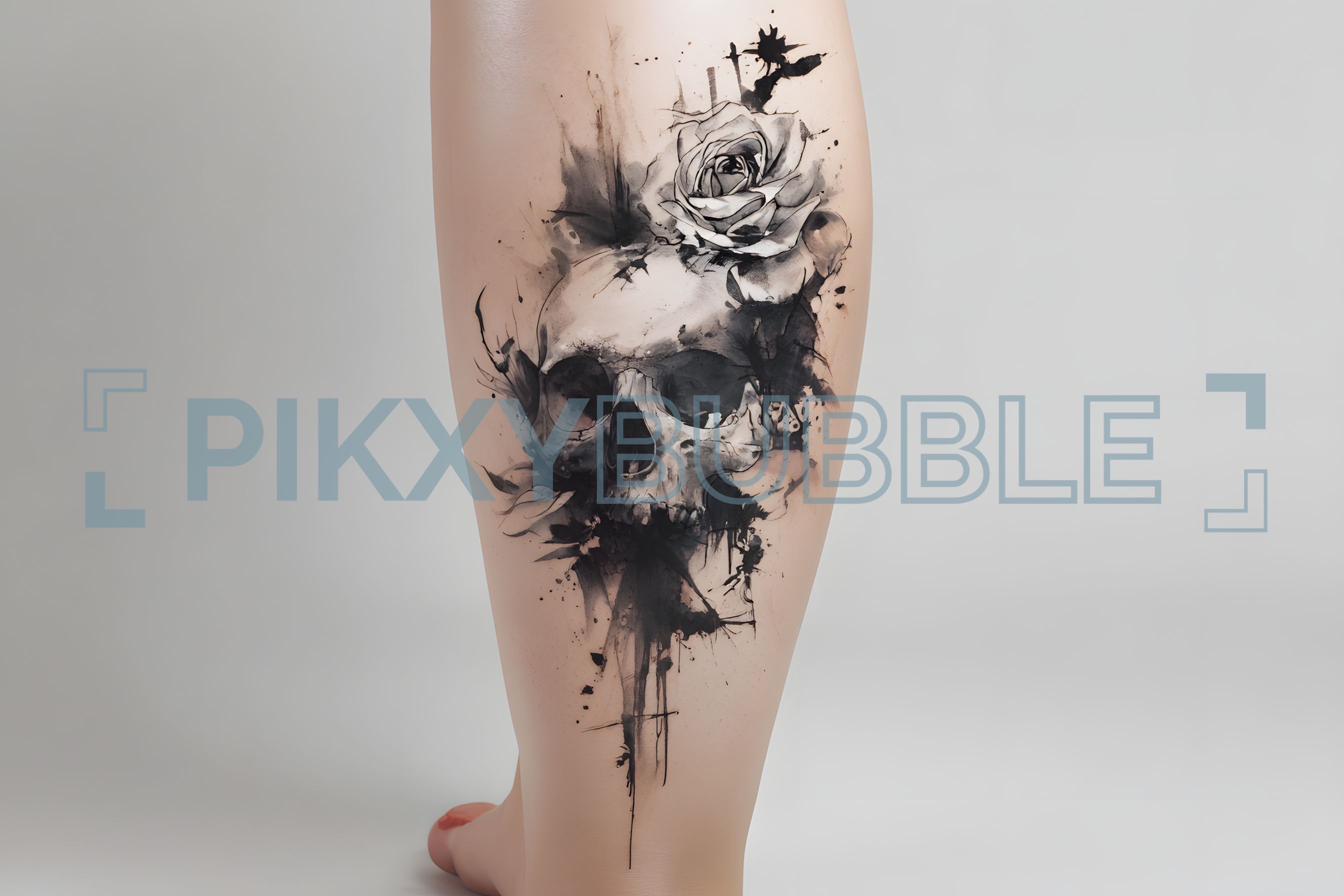 Tatouage de tête de mort avec une rose élégante.