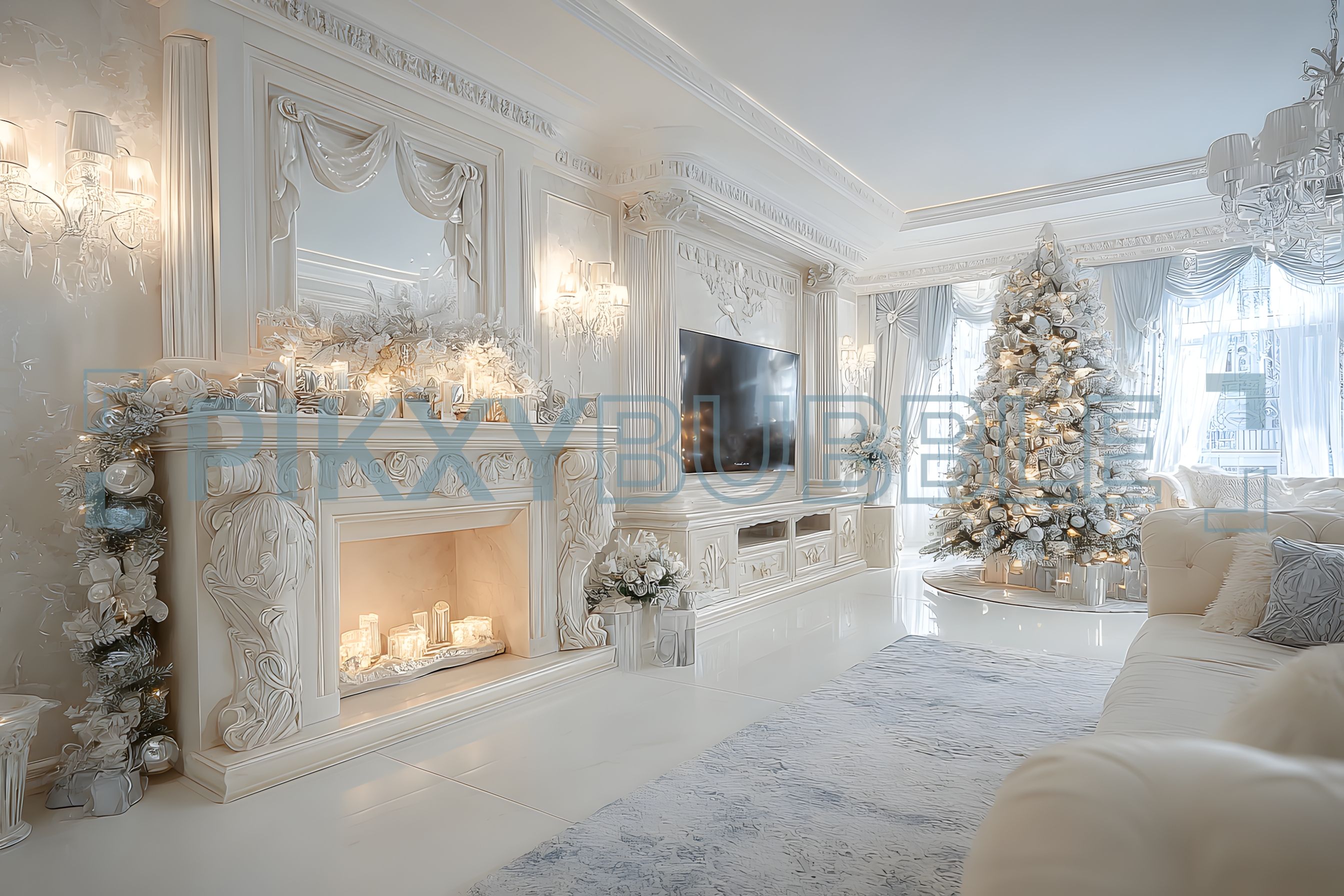 - Un cheminée décorative avec des bougies lumineuses.