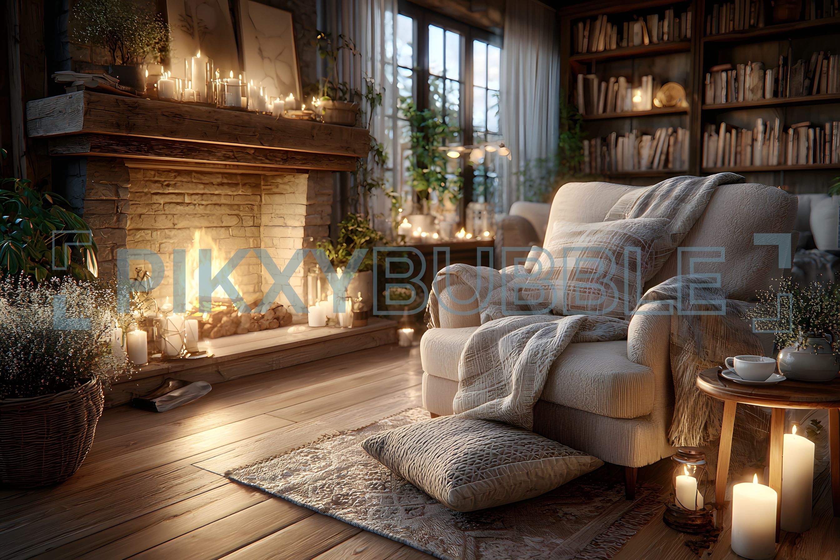 Salon chaleureux avec une ambiance réconfortante.