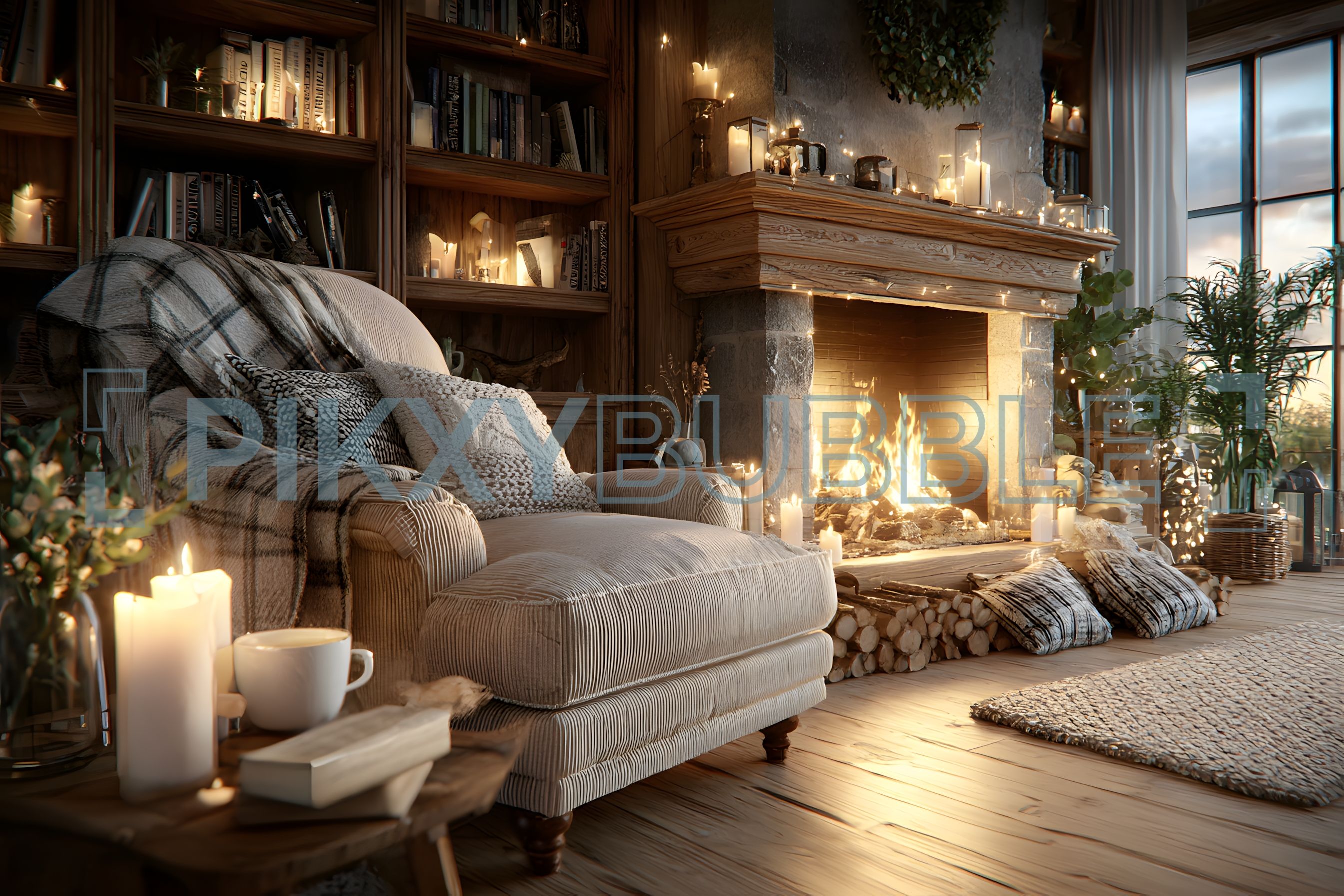 - Un feu de cheminée chaleureux
