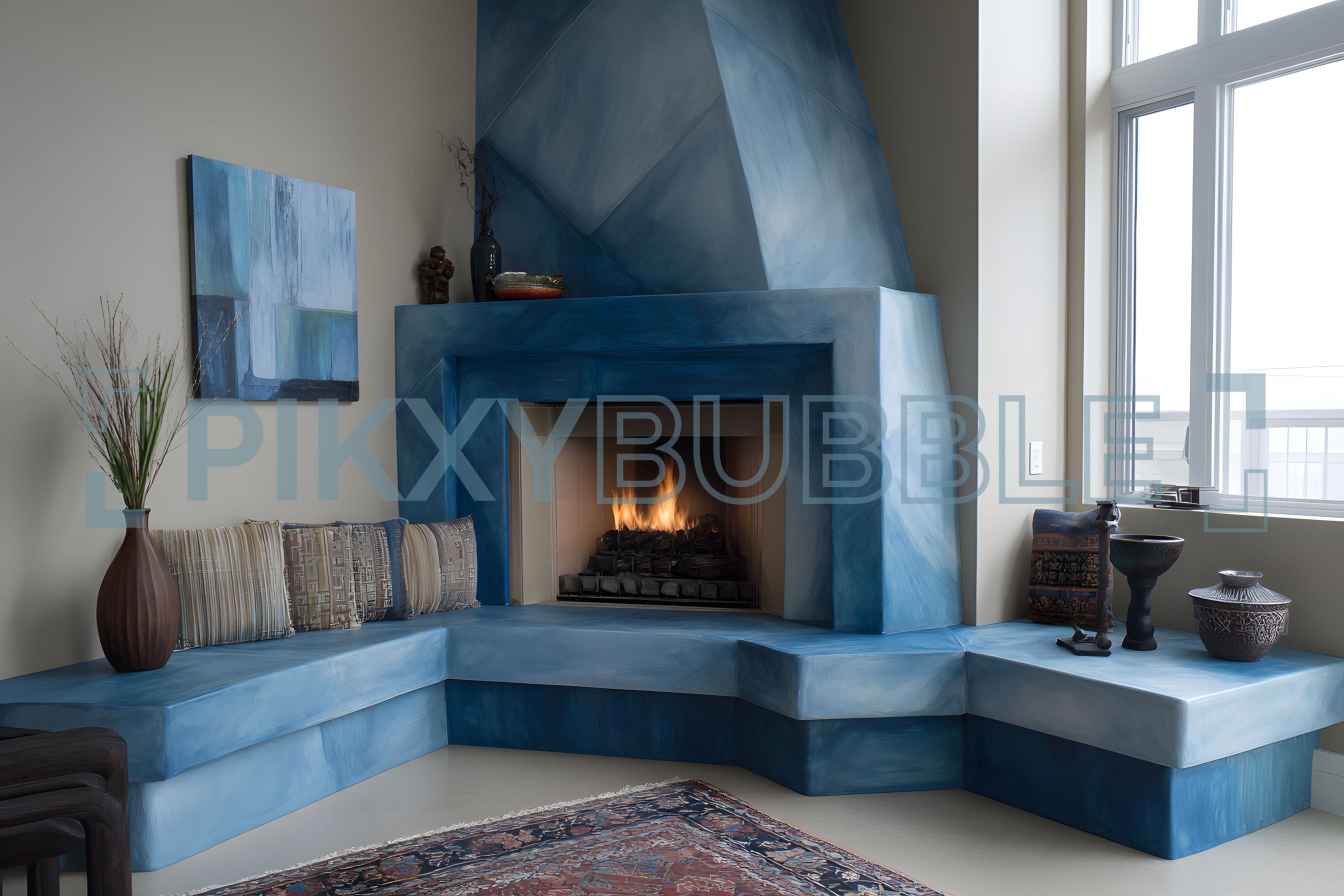 Décor moderne avec cheminée élégante.