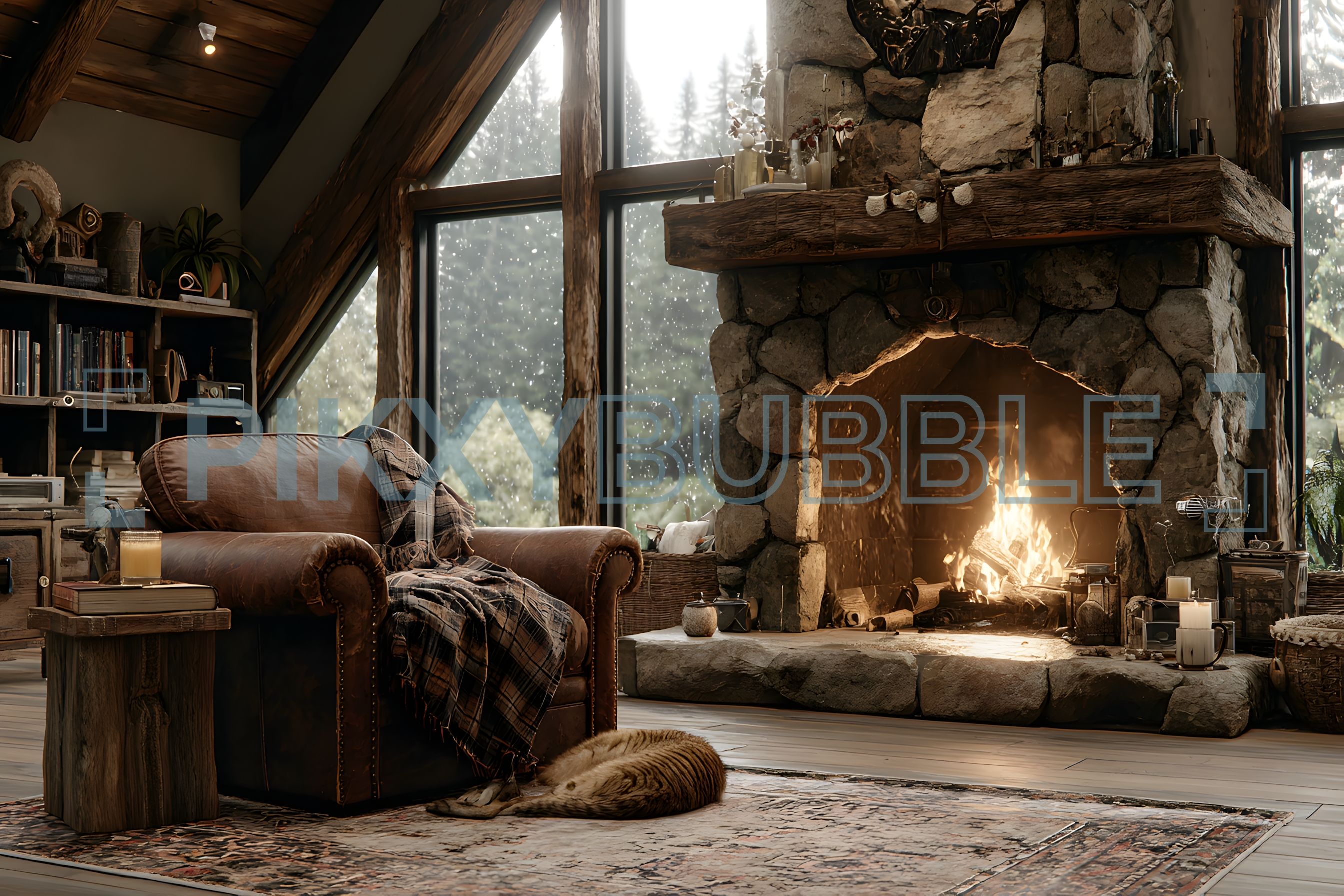 Enveloppé par le crépitement du feu de bois, cet espace est parfait pour se détendre.