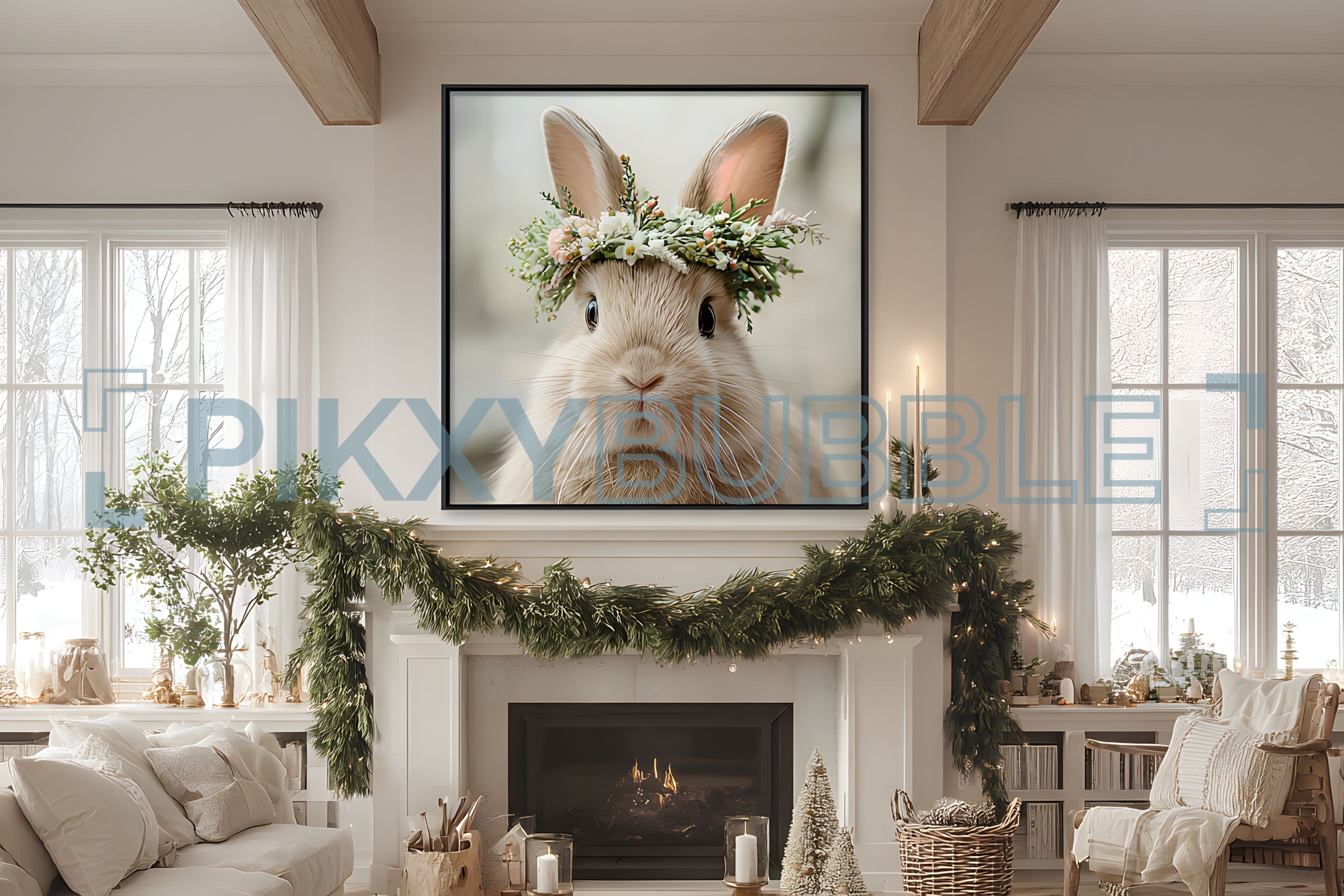 Découvrez notre magnifique lapin décoré avec une couronne de fleurs. Ce charmant animal est parfait pour égayer votre intérieur !