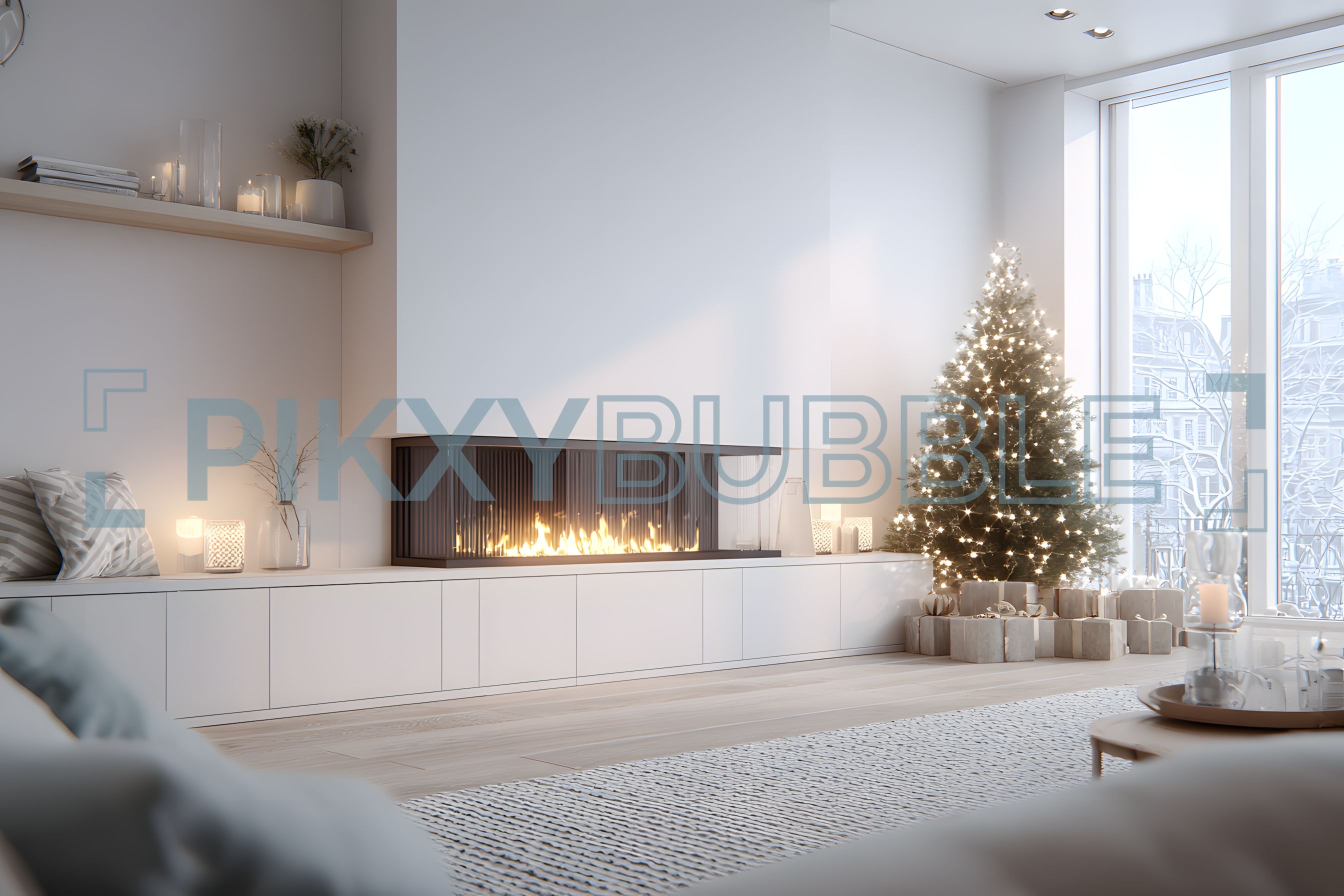 Un espace confortable et moderne pour profiter des soirées d'hiver. Découvrez la chaleur d'un feu de cheminée au cœur d'un salon élégant.