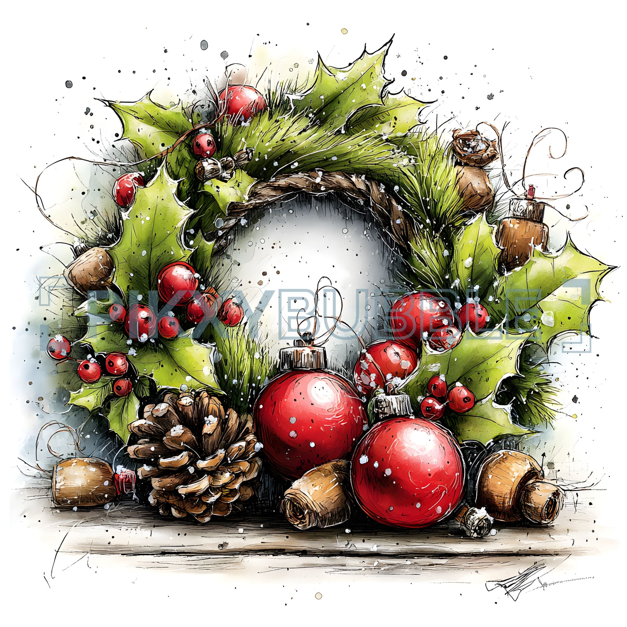 Cette couronne de Noël est parfaite pour embellir votre foyer. Découvrez ses éléments traditionnels :