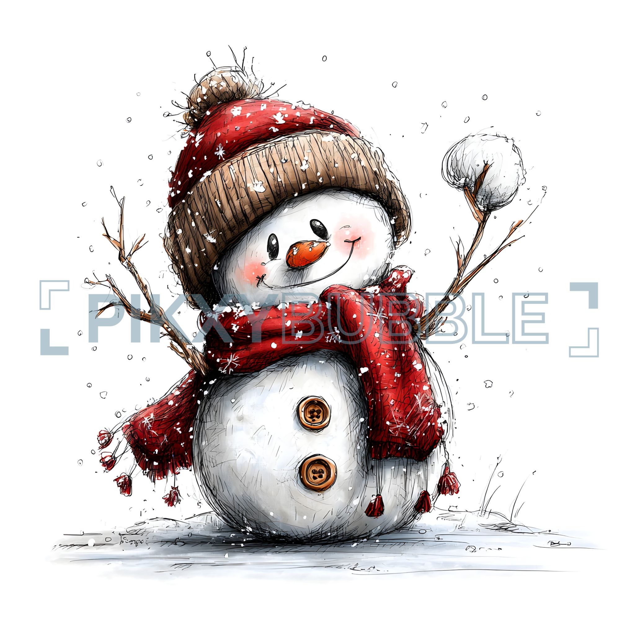 Ce bonhomme de neige est adorable. Il porte un chapeau et une écharpe rouge.