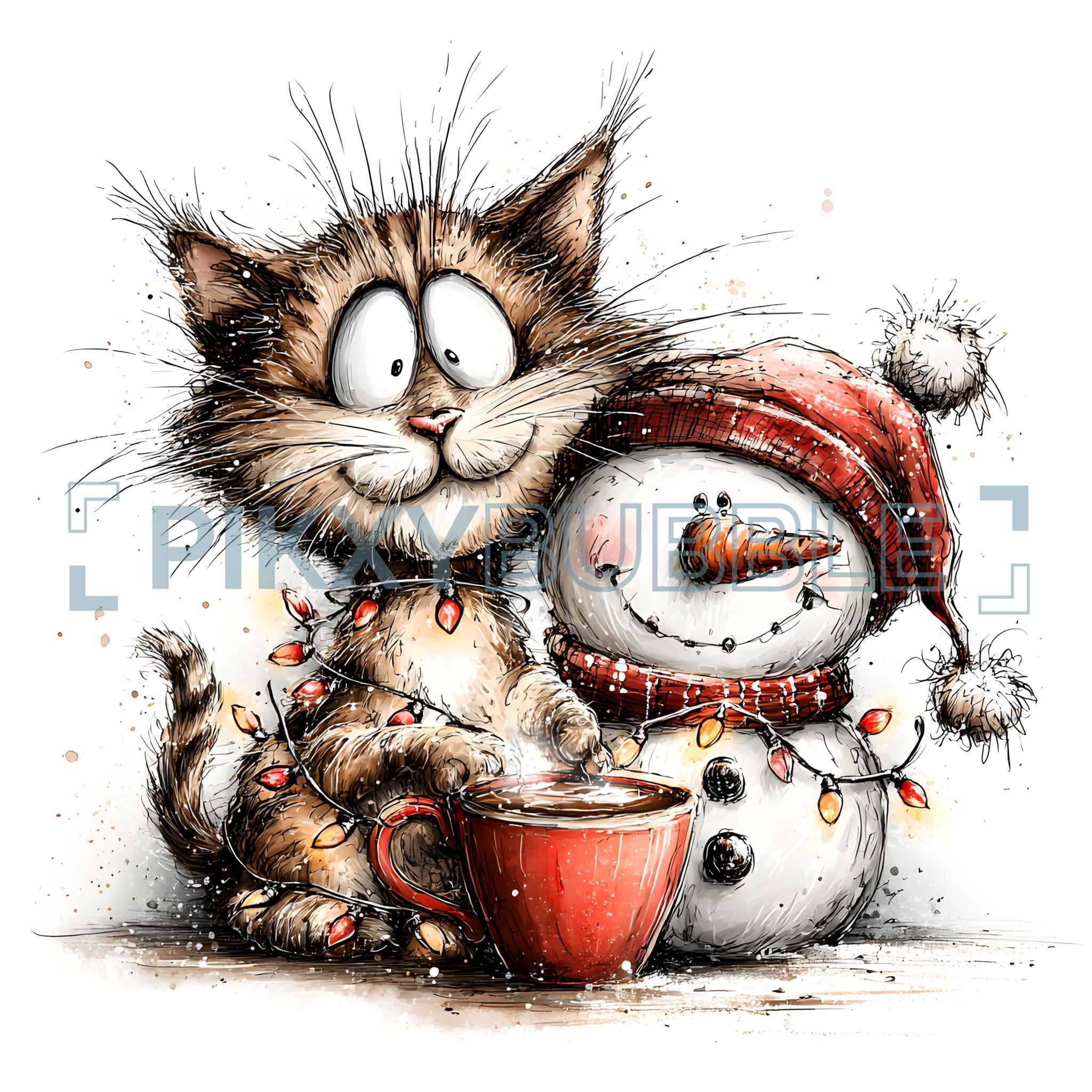Un chat joyeux et un profitant d'une journée d'hiver magique.