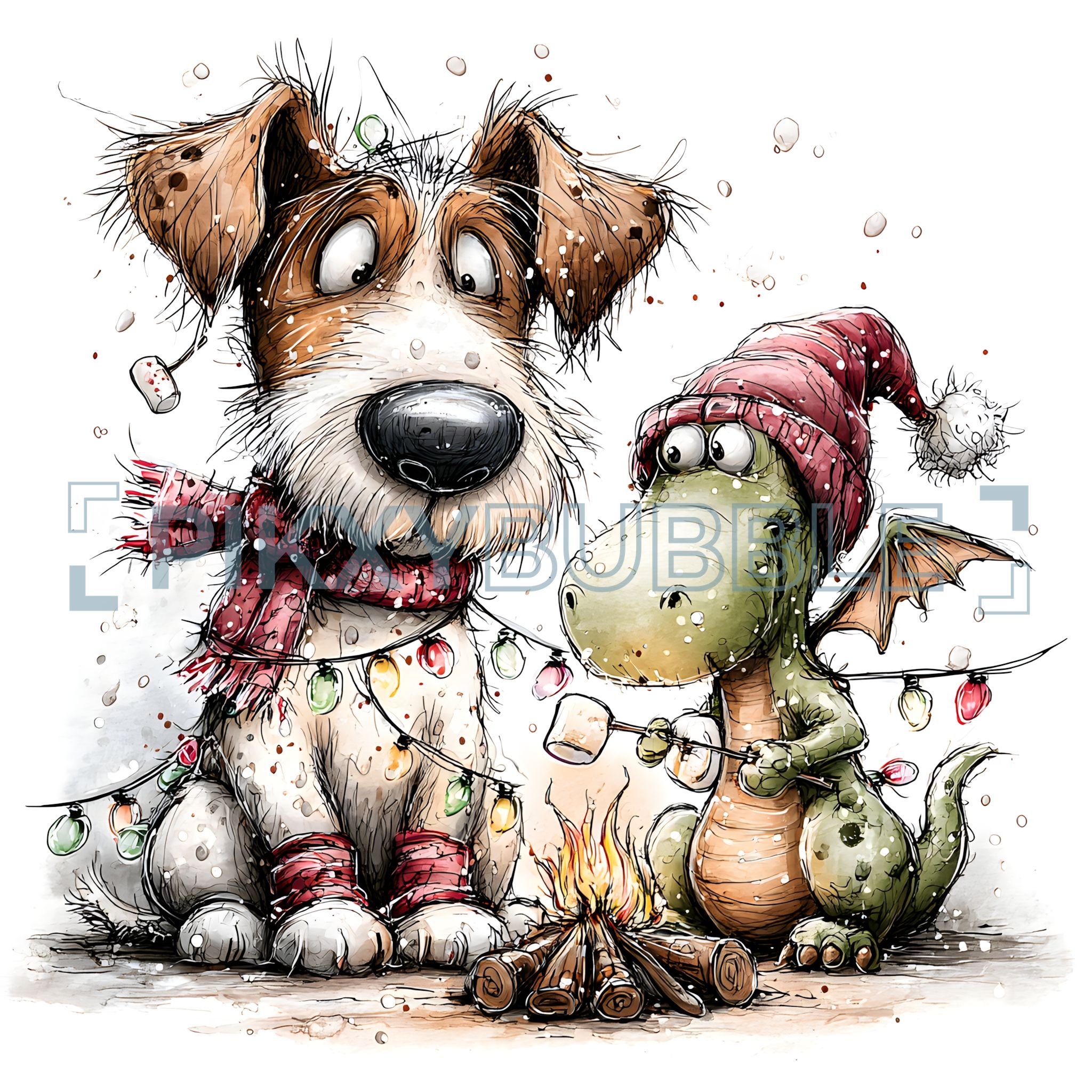 Amusantes aventures d'un chien et d'un dragon lors des froides nuits d'hiver.