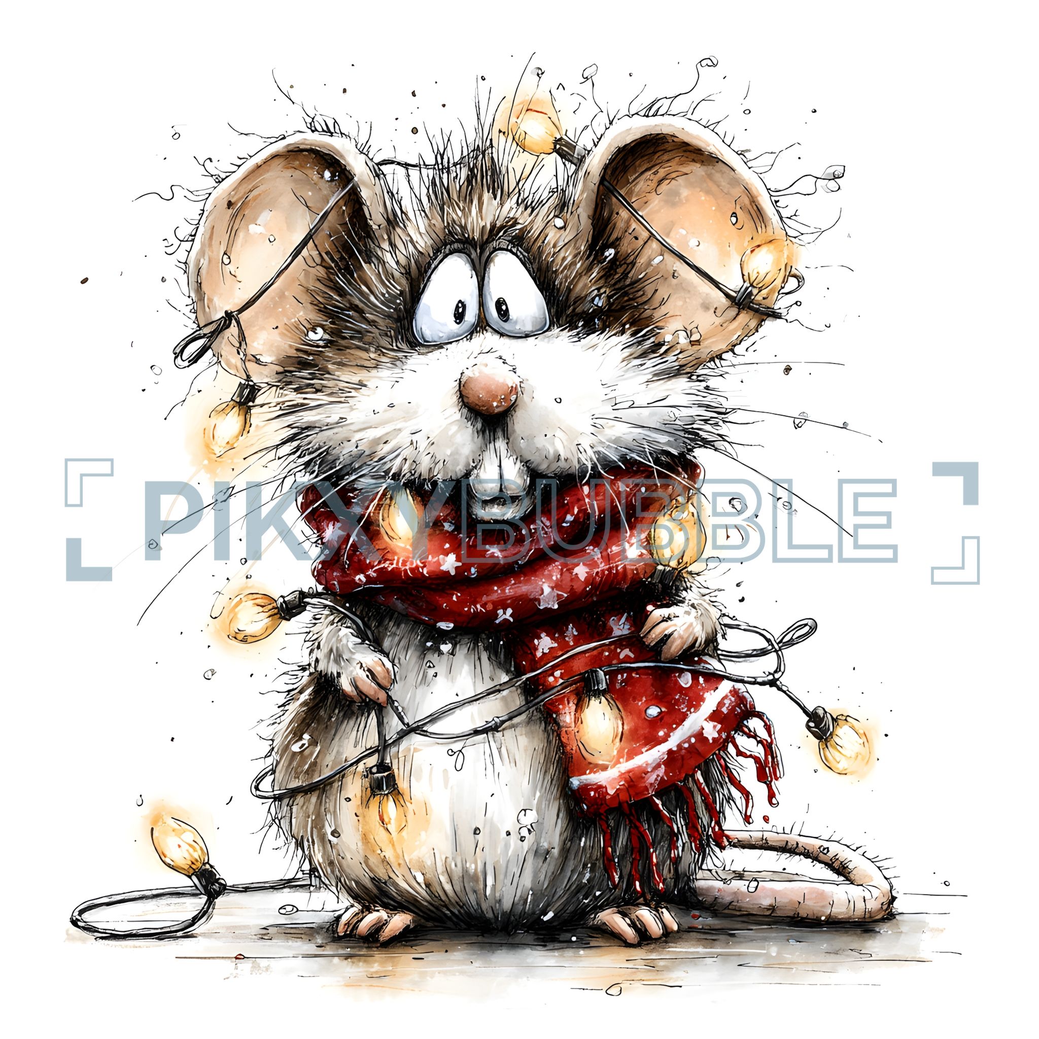 Un adorable petit rongeur portant un écharpe festive et tenant des lumières d'hiver. Voici quelques détails intéressants :