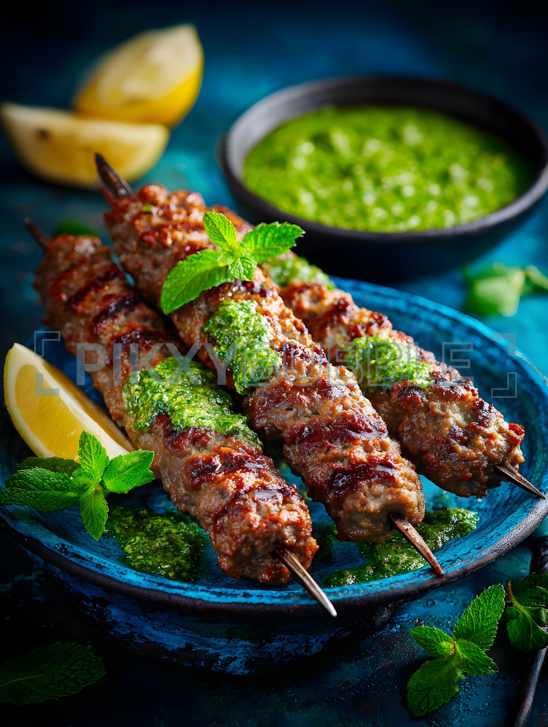 Délicieux brochettes de viande avec une sauce verte exquise :